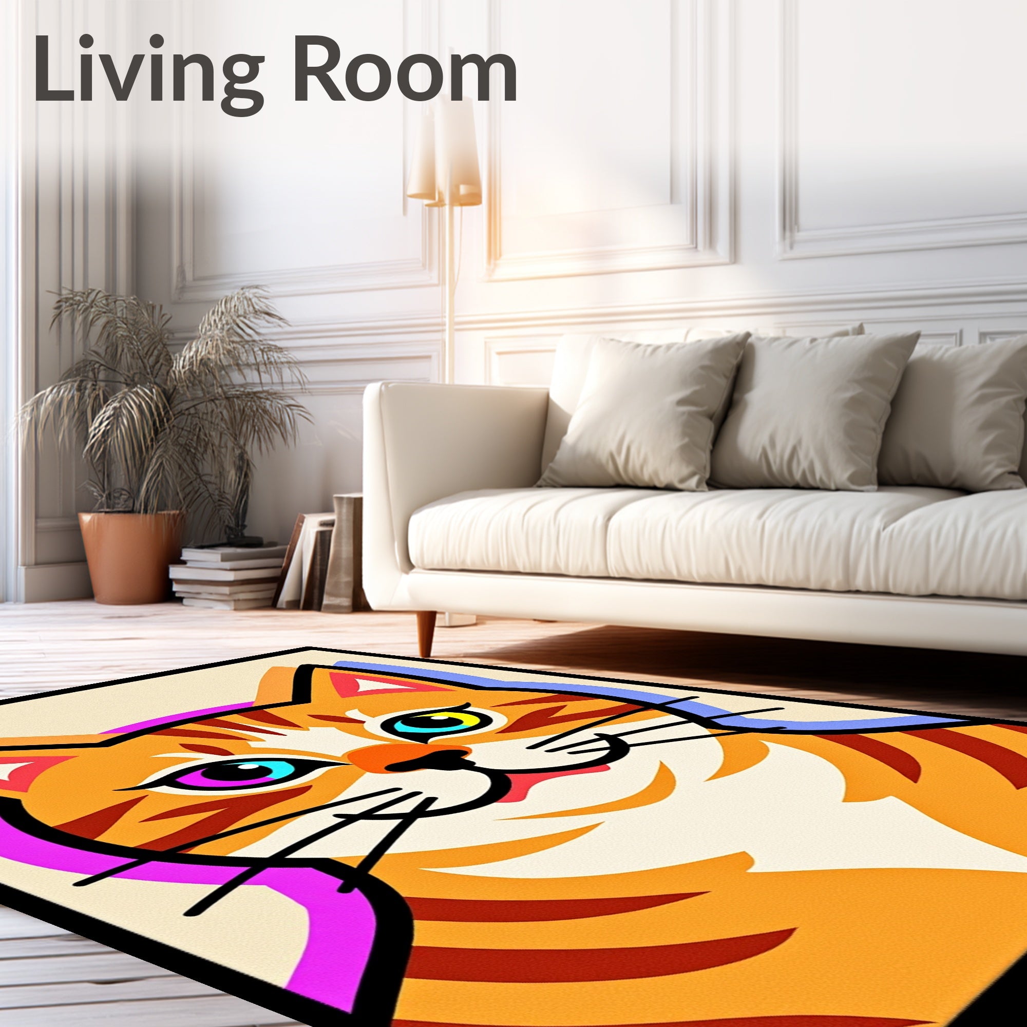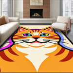 Ultra Soft Area Rug, Non Slip, Stain Resistant, Washable Area Rugs for Living Room, Bedroom, Abstract Cat Face Mosaic with Glowing Edge Trim Holiday(Orange) Overview: