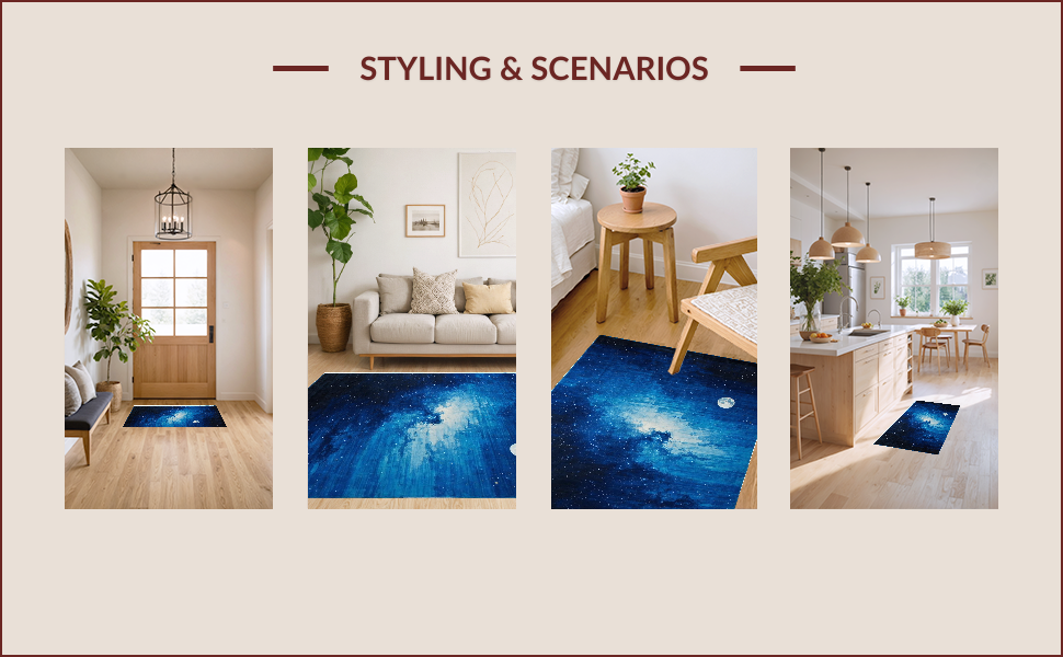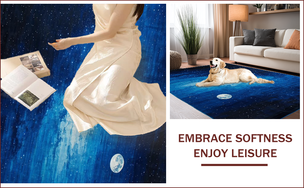 Ultra Soft Area Rug, Non Slip, Stain Resistant, Washable Area Rugs for Living Room, Bedroom, Abstract Celestial Imagery Creation(Blue) Overview: