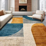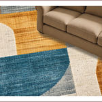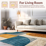 Ultra Soft Area Rug, Non Slip, Stain Resistant, Washable Area Rugs for Living Room, Bedroom, Abstract Checkered Brown Blue Living Room Rug(Gold) Overview: