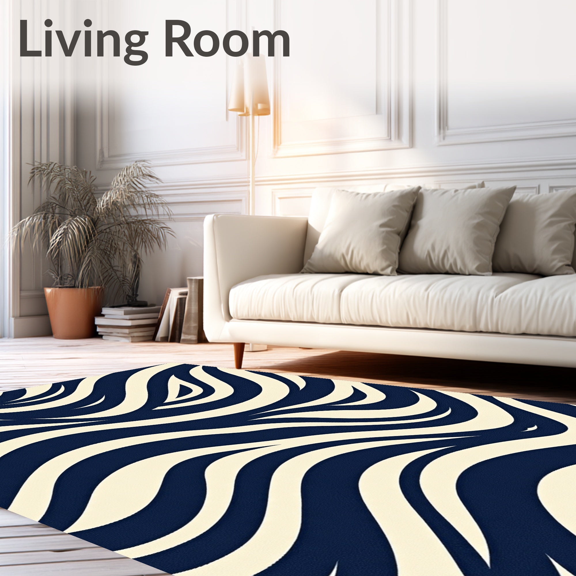 Ultra Soft Area Rug, Non Slip, Stain Resistant, Washable Area Rugs for Living Room, Bedroom, Abstract Chevron Waves with Layered Motifs and Symmetrical Flow(Blue) Overview:
