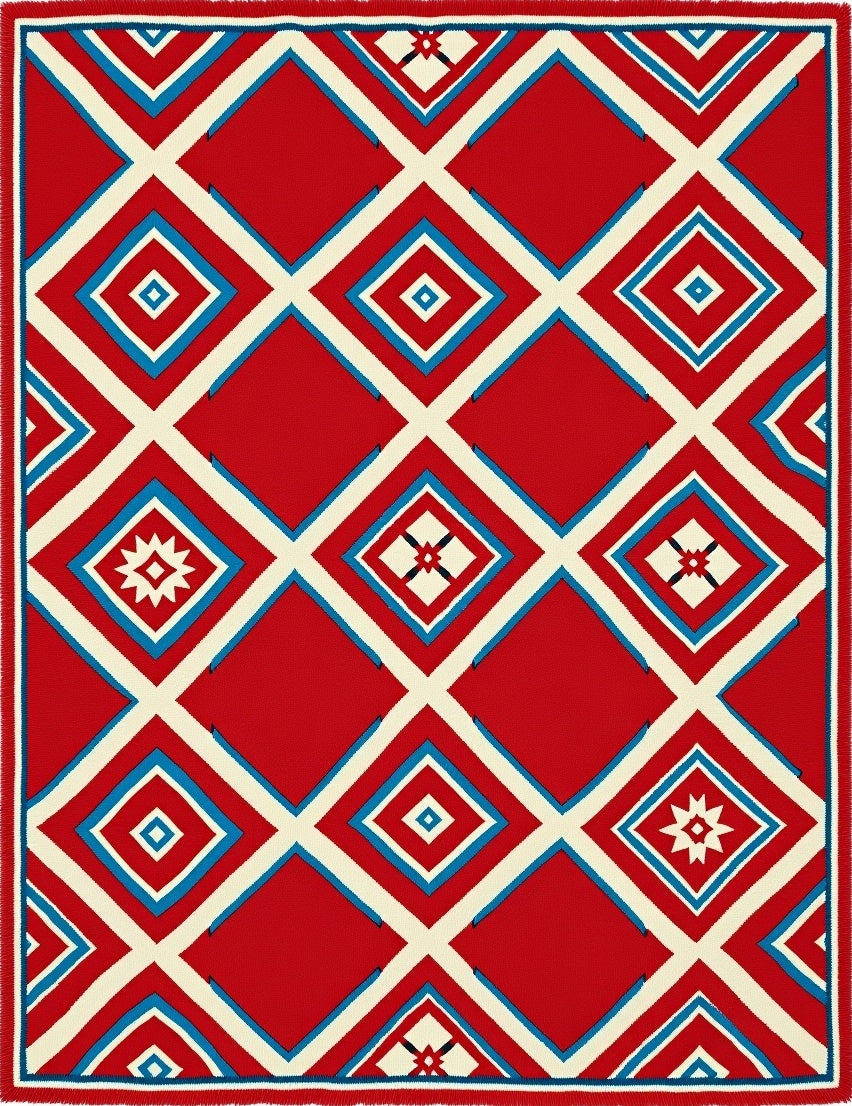 Abstract Chevron with Symmetrical Motifs(Red)
