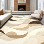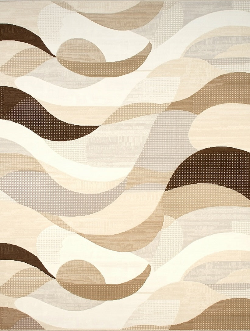 Flatwoven High Traffic Area Rug, Abstract Circular Wave Design With Overlapping Scrolls, Non Slip, Stain Resistant, Washable Area Rugs for Living Room, Bedroom (Beige) Overview: