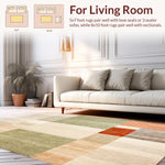 Ultra Soft Area Rug, Non Slip, Stain Resistant, Washable Area Rugs for Living Room, Bedroom, Abstract Color Block Area Featuring Earthy Tones and Dynamic Burst(Beige) Overview: