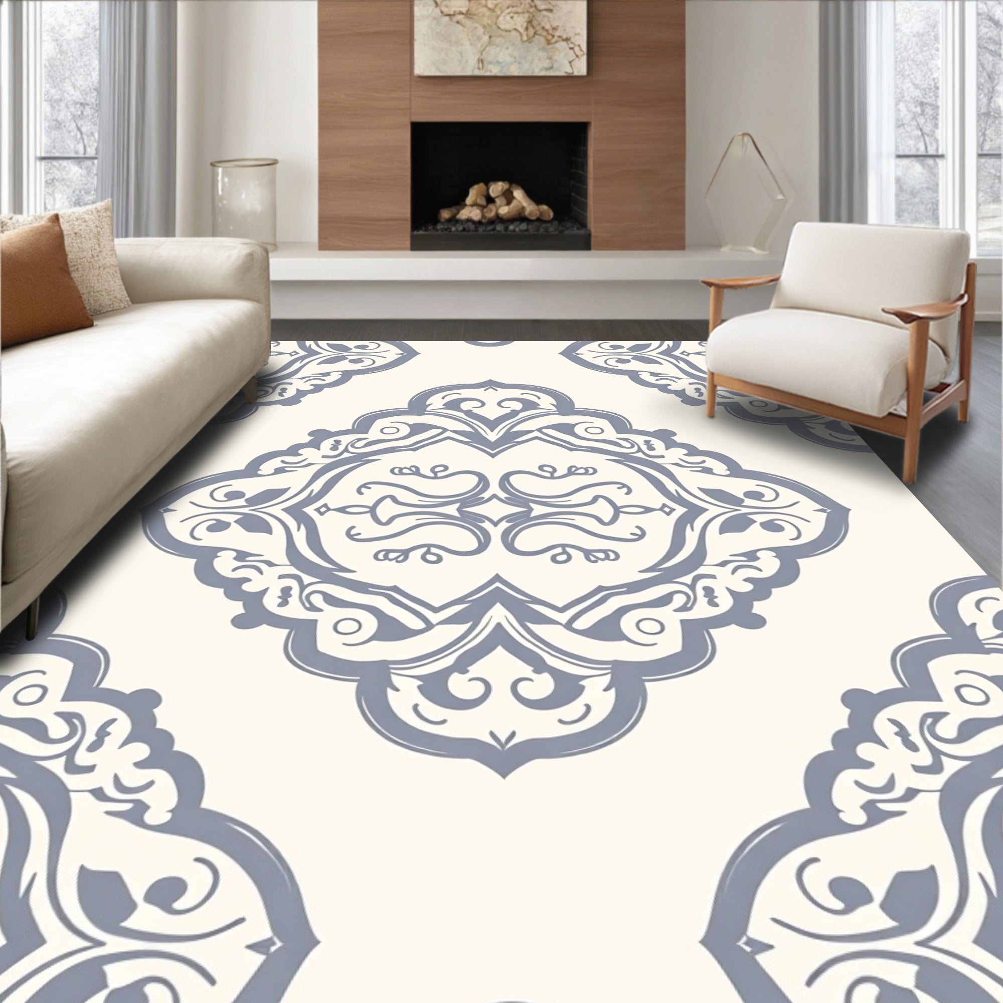 Ultra Soft Area Rug, Non Slip, Stain Resistant, Washable Area Rugs for Living Room, Bedroom, Abstract Damask Design with Faded Scrollwork(Gray) Overview: