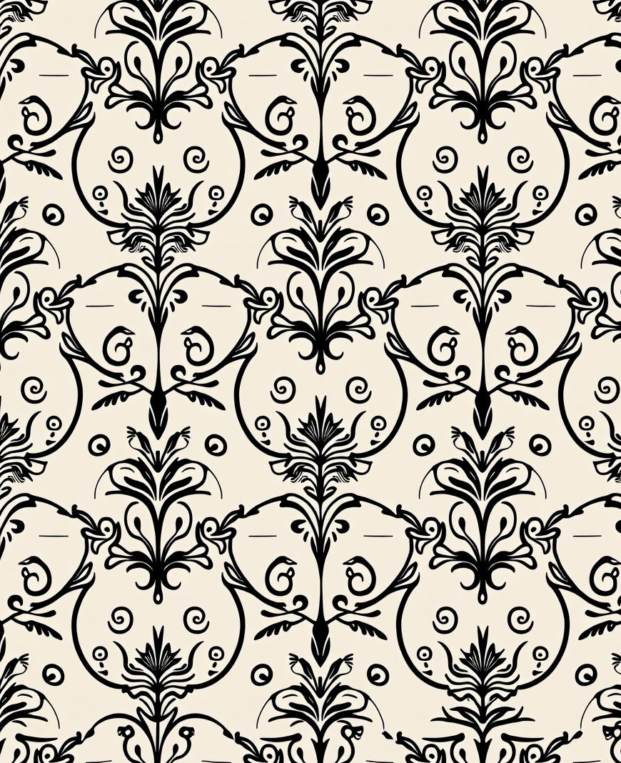 Abstract Damask Scroll Hallway Pathway(Beige)