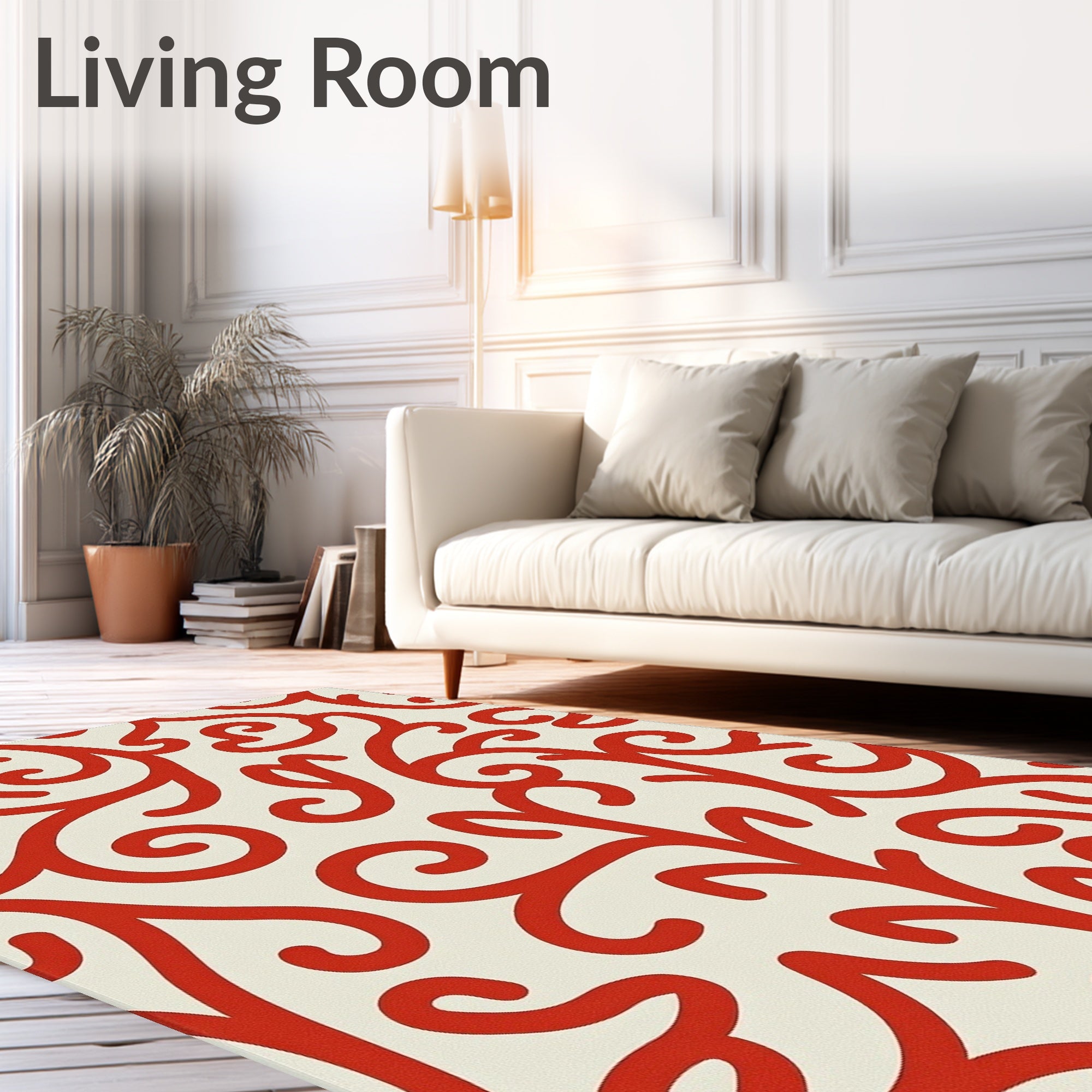 Ultra Soft Area Rug, Non Slip, Stain Resistant, Washable Area Rugs for Living Room, Bedroom, Abstract Fall Inspired Interlocking Floral And Vine Design(Red) Overview: