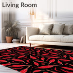Ultra Soft Area Rug, Non Slip, Stain Resistant, Washable Area Rugs for Living Room, Bedroom, Abstract Feather Swirls with Whimsical Dot Embellishments(Black) Overview: