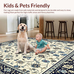 Ultra Soft Area Rug, Non Slip, Stain Resistant, Washable Area Rugs for Living Room, Bedroom, Abstract Floral Geometric in Beige and Navy(Ivory) Overview: