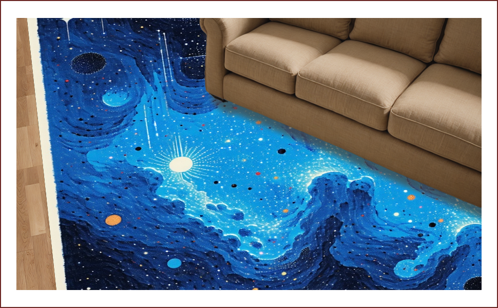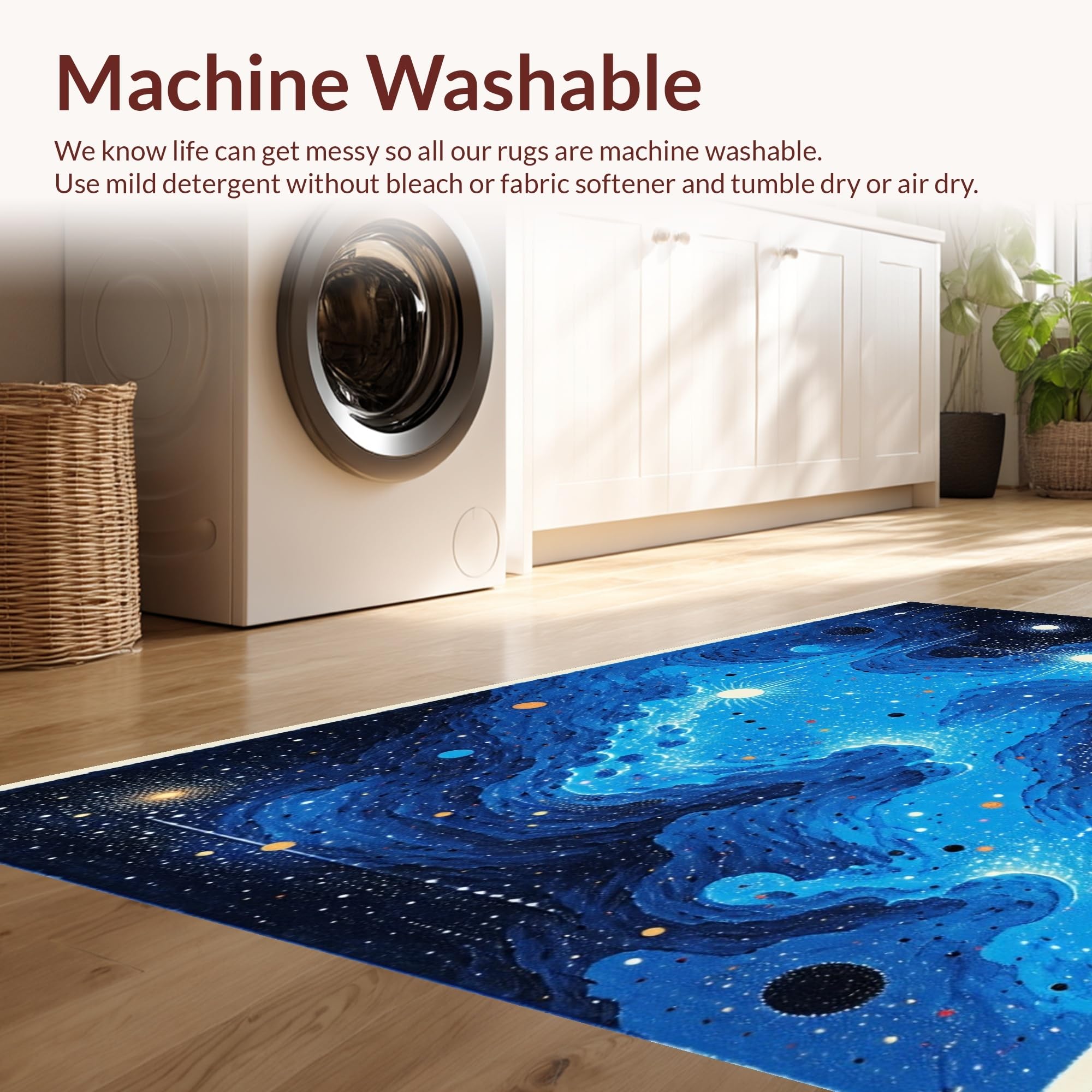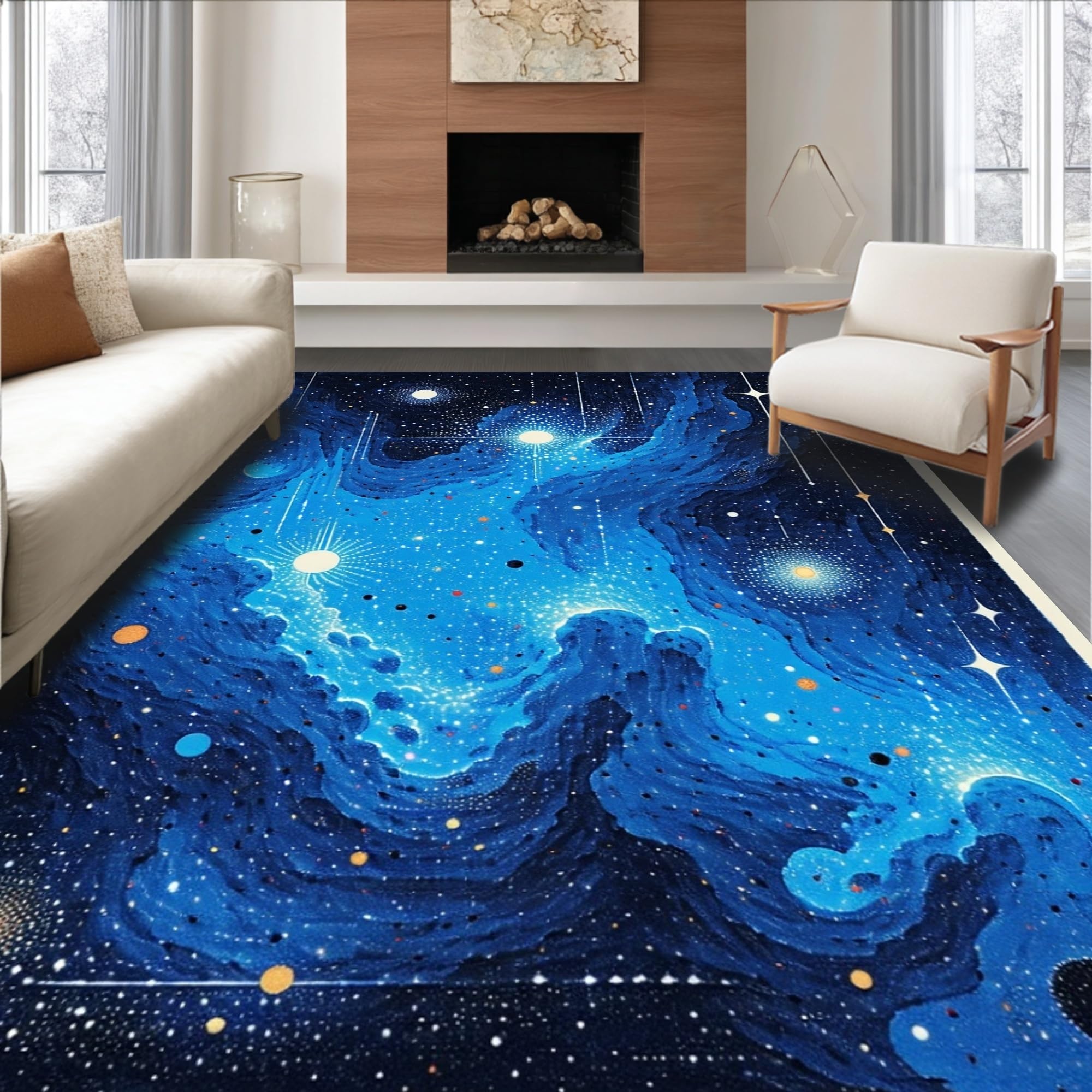 Ultra Soft Area Rug, Non Slip, Stain Resistant, Washable Area Rugs for Living Room, Bedroom, Abstract Galaxy Living Room Non-Slip Space Rug(Blue) Overview: