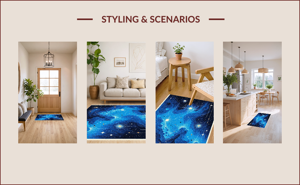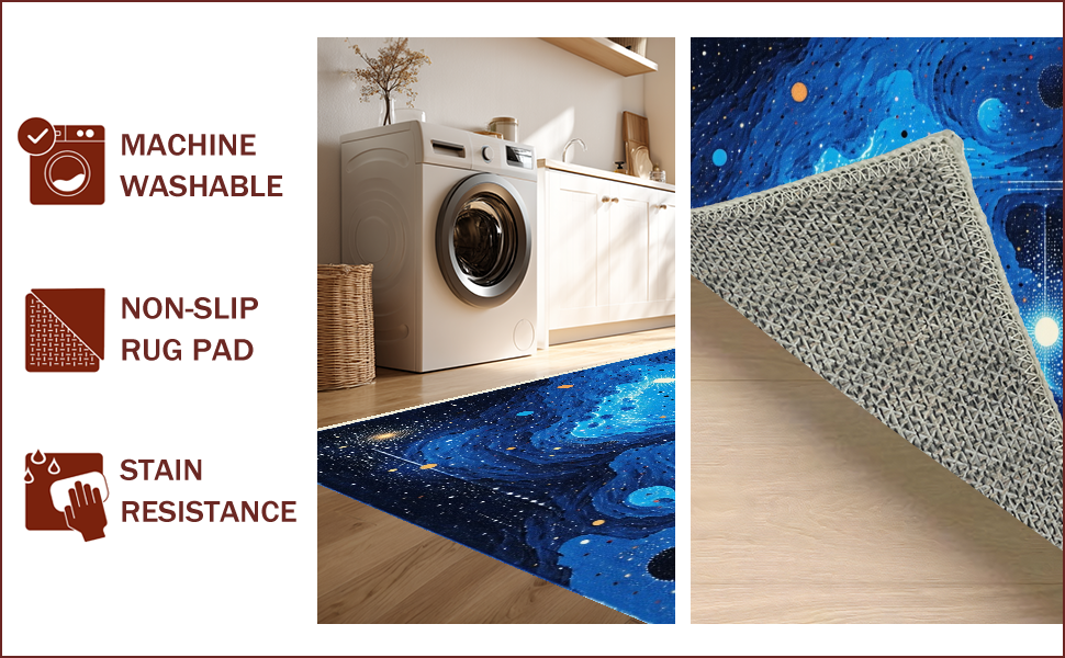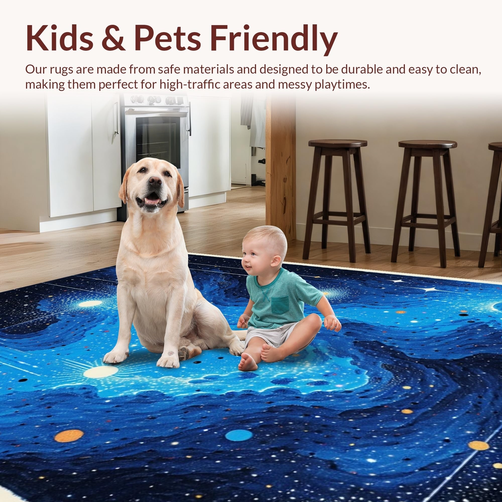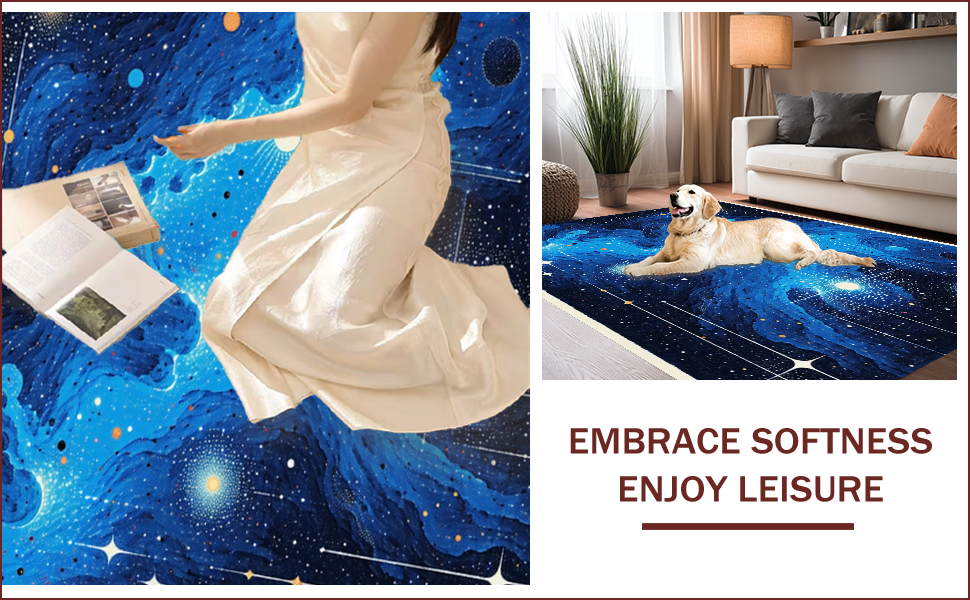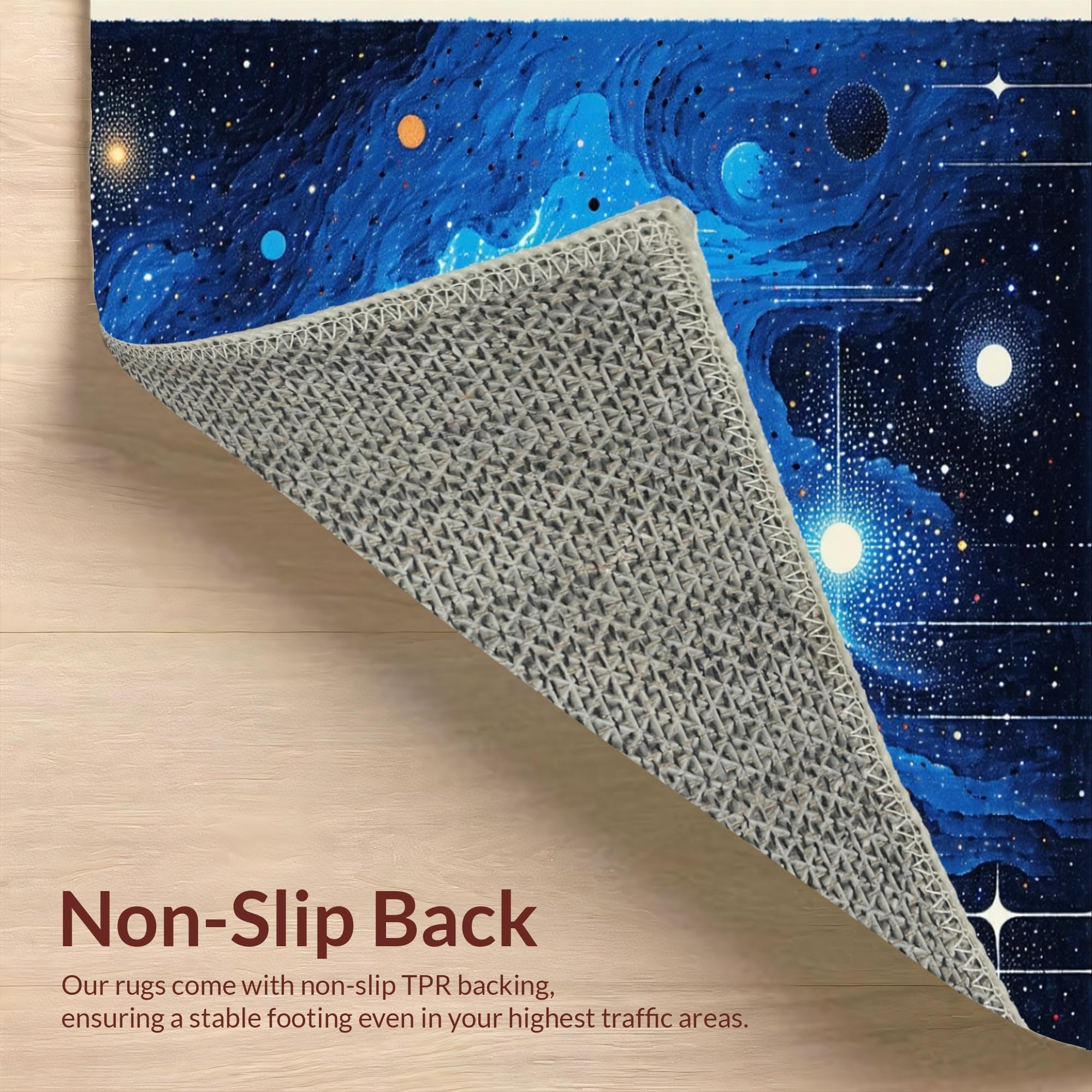 Ultra Soft Area Rug, Non Slip, Stain Resistant, Washable Area Rugs for Living Room, Bedroom, Abstract Galaxy Living Room Non-Slip Space Rug(Blue) Overview:
