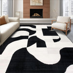 Abstract Geometric Area Rug Contemporary Black & White Pattern Mat(Black)