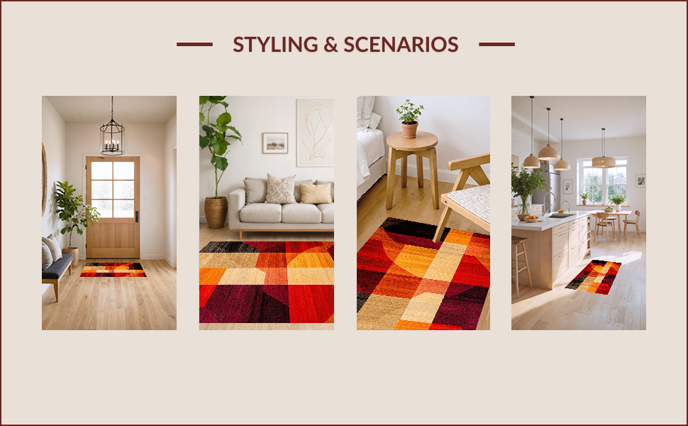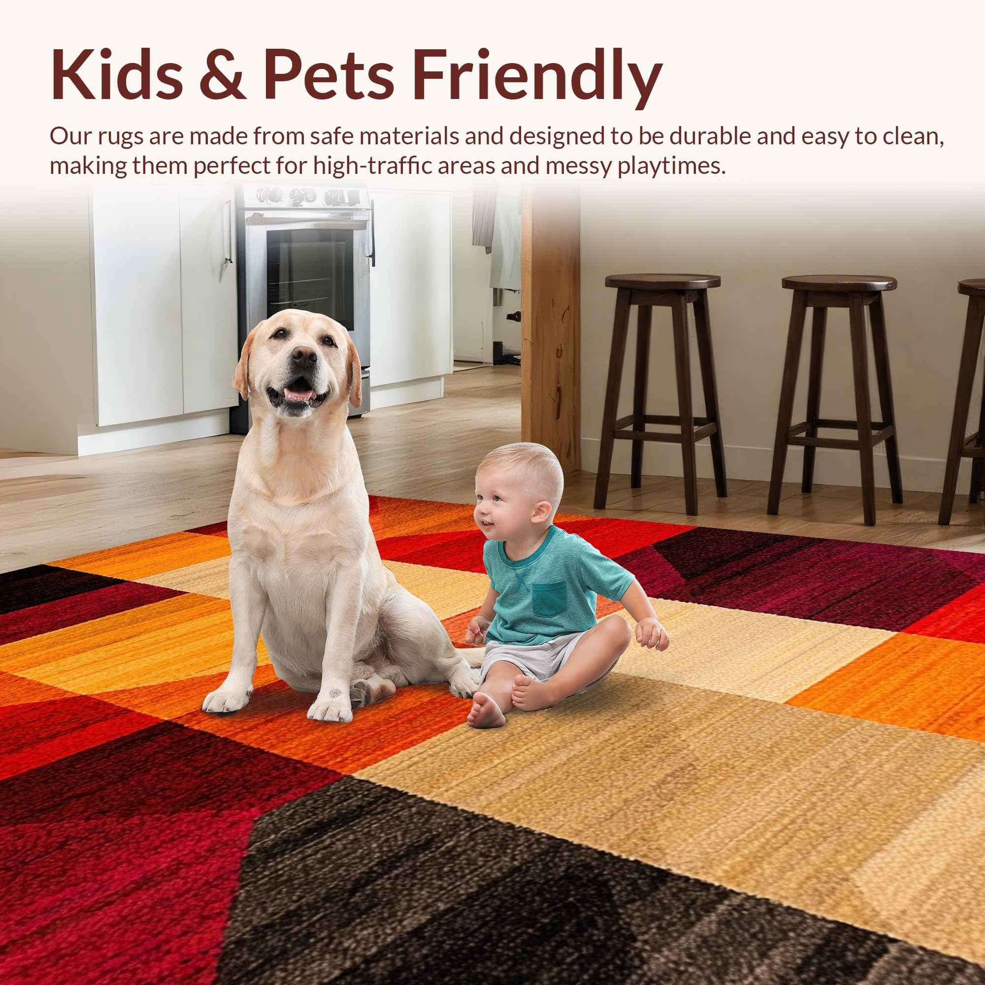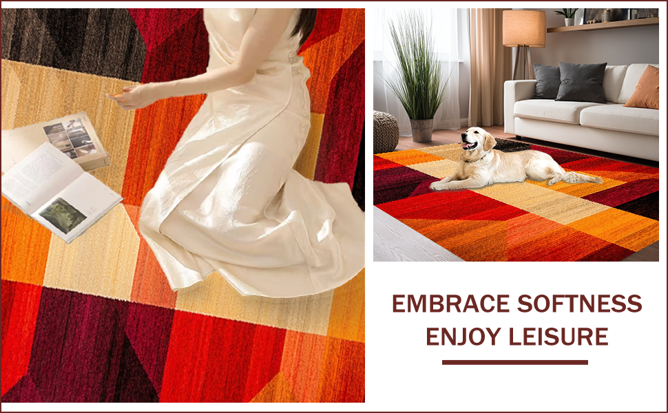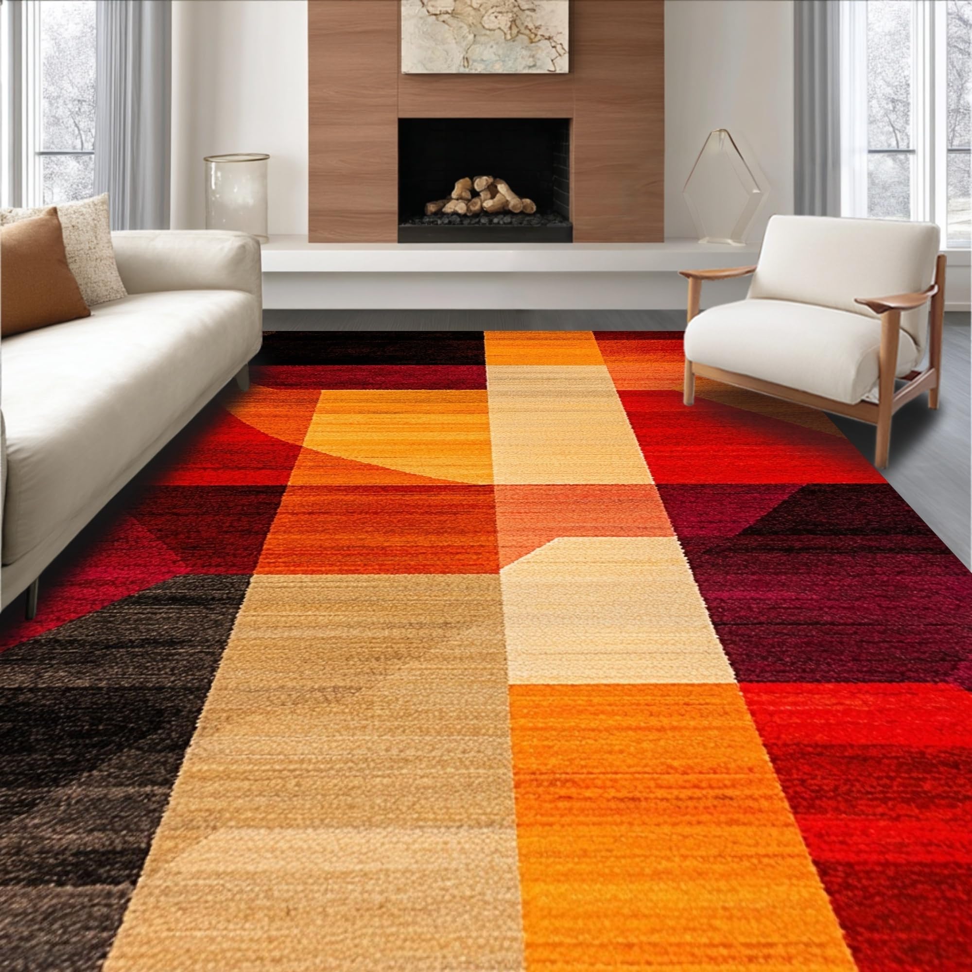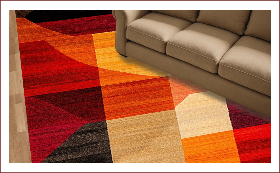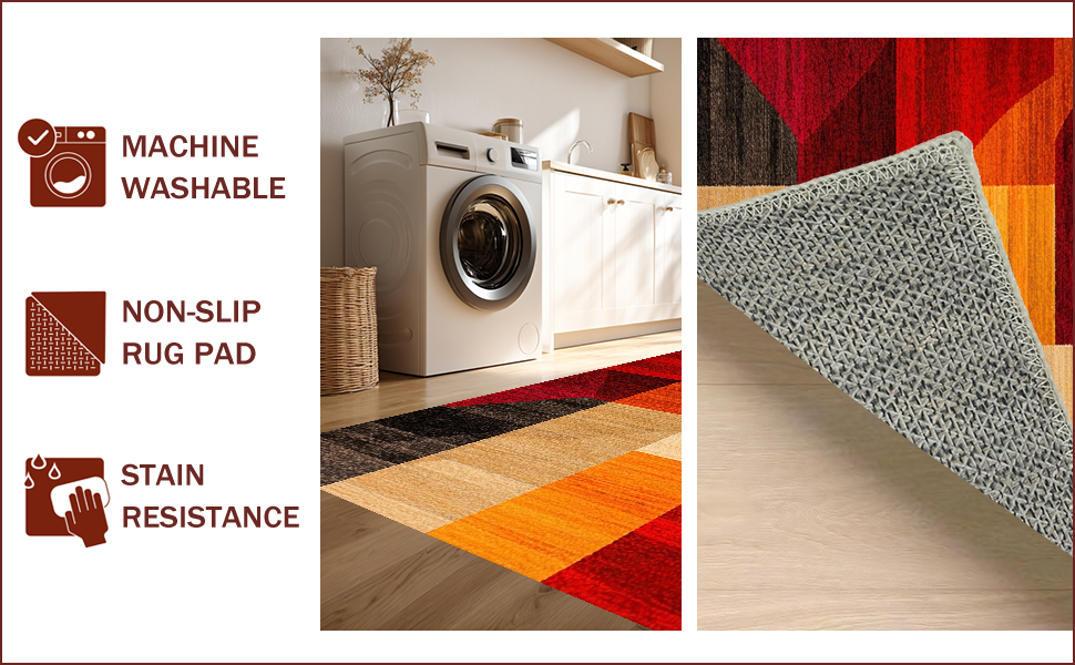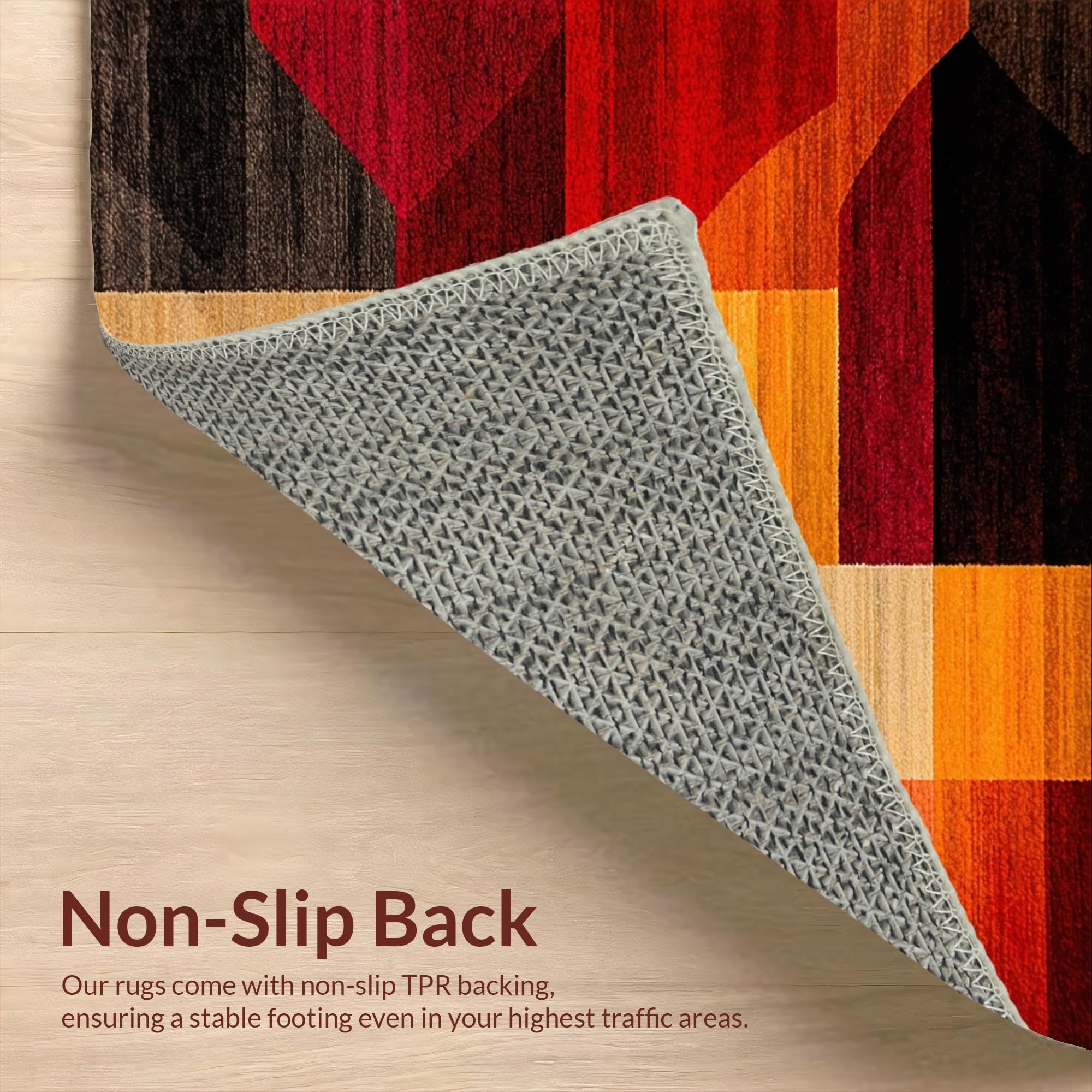 Ultra Soft Area Rug, Non Slip, Stain Resistant, Washable Area Rugs for Living Room, Bedroom, Abstract Geometric Burnt Orange Living Room Floor Rug(Red) Overview:
