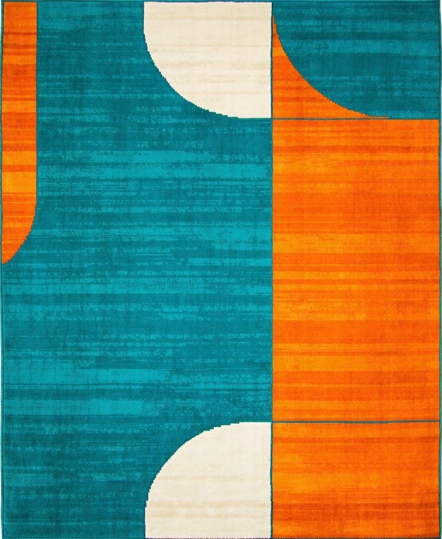Flatwoven High Traffic Area Rug, Abstract Geometric Design in Teal and Burnt Orange, Non Slip, Stain Resistant, Washable Area Rugs for Living Room, Bedroom (Blue) Overview: