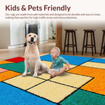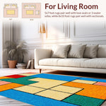 Ultra Soft Area Rug, Non Slip, Stain Resistant, Washable Area Rugs for Living Room, Bedroom, Abstract Geometric Multi-Color Nursery Play Mat(Blue) Overview: