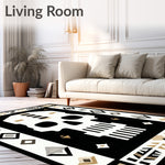 Ultra Soft Area Rug, Non Slip, Stain Resistant, Washable Area Rugs for Living Room, Bedroom, Abstract Geometric Skull Motif with Symmetrical Tribal Lines(Black) Overview: