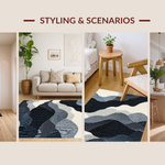 Ultra Soft Area Rug, Non Slip, Stain Resistant, Washable Area Rugs for Living Room, Bedroom, Abstract Grayscale Wave Pattern Runner Rug with Flowing Striped Motif(Gray) Overview: