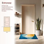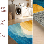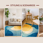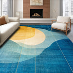 Ultra Soft Area Rug, Non Slip, Stain Resistant, Washable Area Rugs for Living Room, Bedroom, Abstract Horizon Rug with Blue Gold Ombre, Modern Geometric Linework(Blue) Overview: