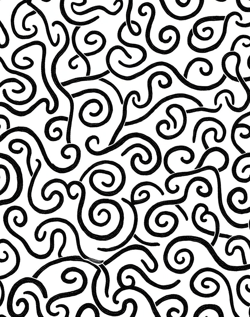 Abstract Ink Brush Interlocking Design with Artistic Swirl Motifs(Black)