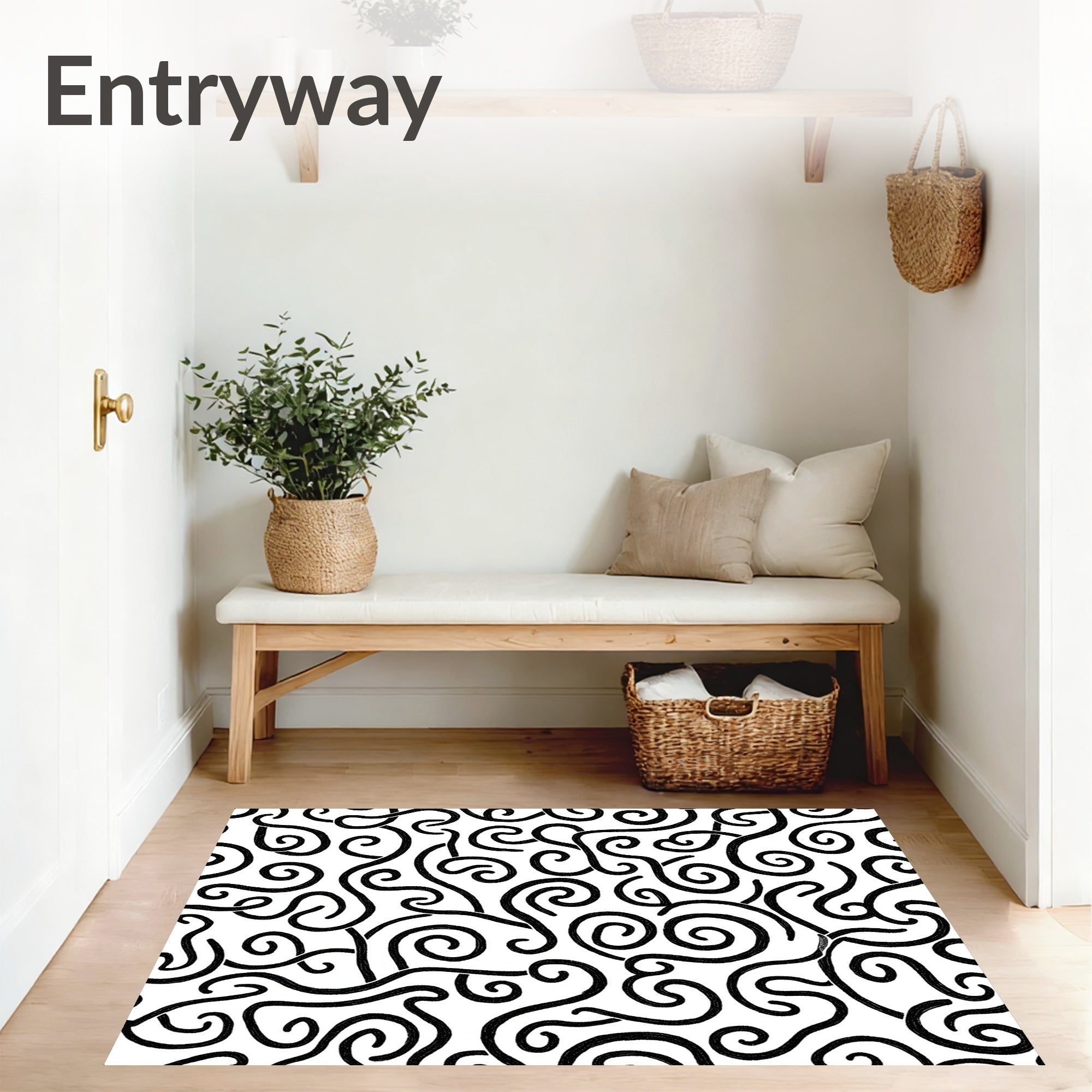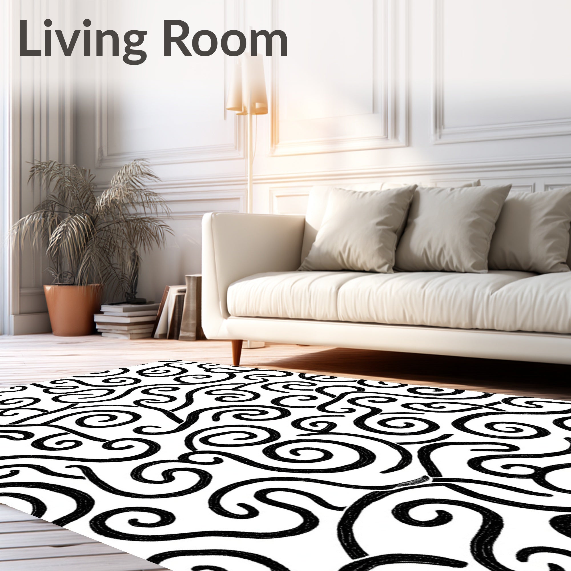 Ultra Soft Area Rug, Non Slip, Stain Resistant, Washable Area Rugs for Living Room, Bedroom, Abstract Ink Brush Interlocking Design with Artistic Swirl Motifs(Black) Overview: