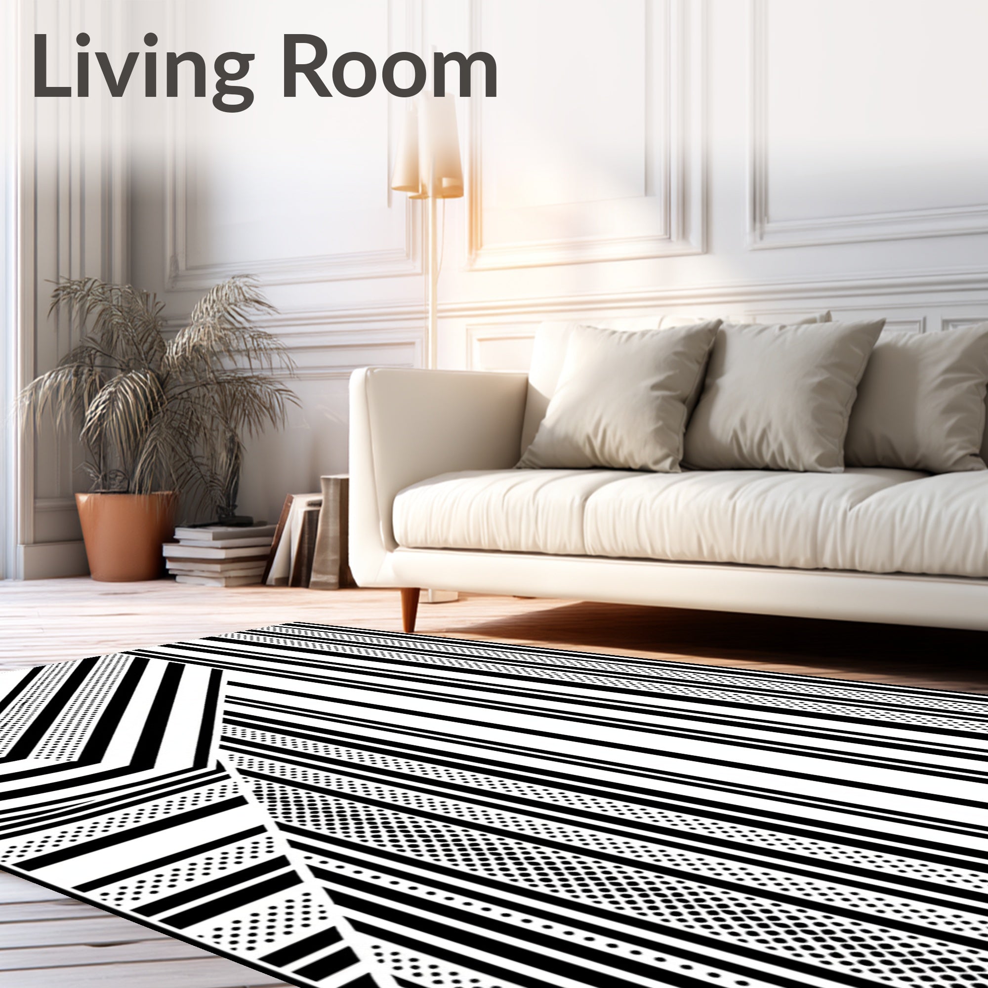 Ultra Soft Area Rug, Non Slip, Stain Resistant, Washable Area Rugs for Living Room, Bedroom, Abstract Interlocking Stripes with Minimalist Modern Flair(Black) Overview:
