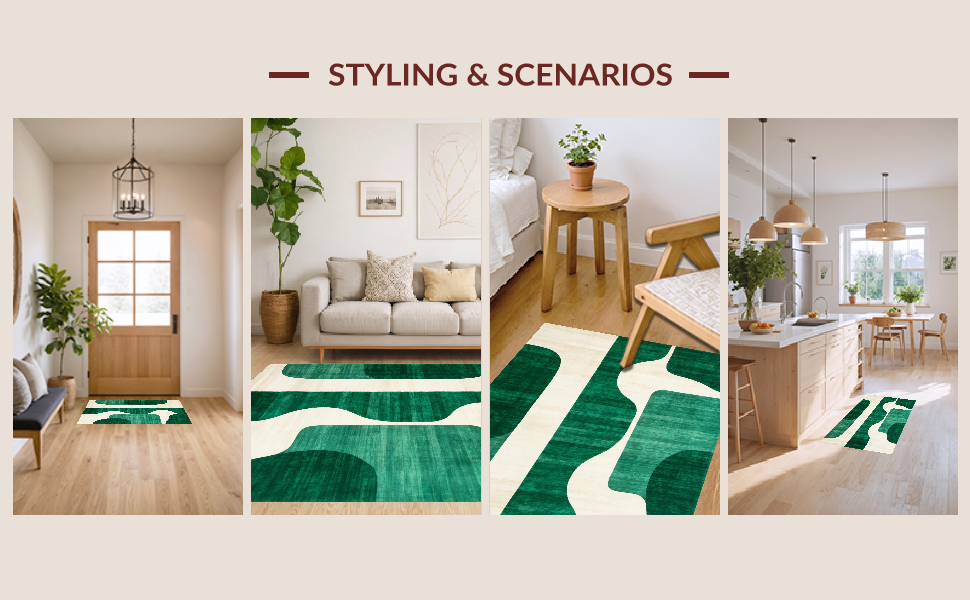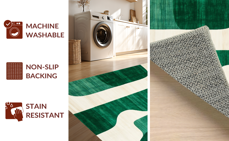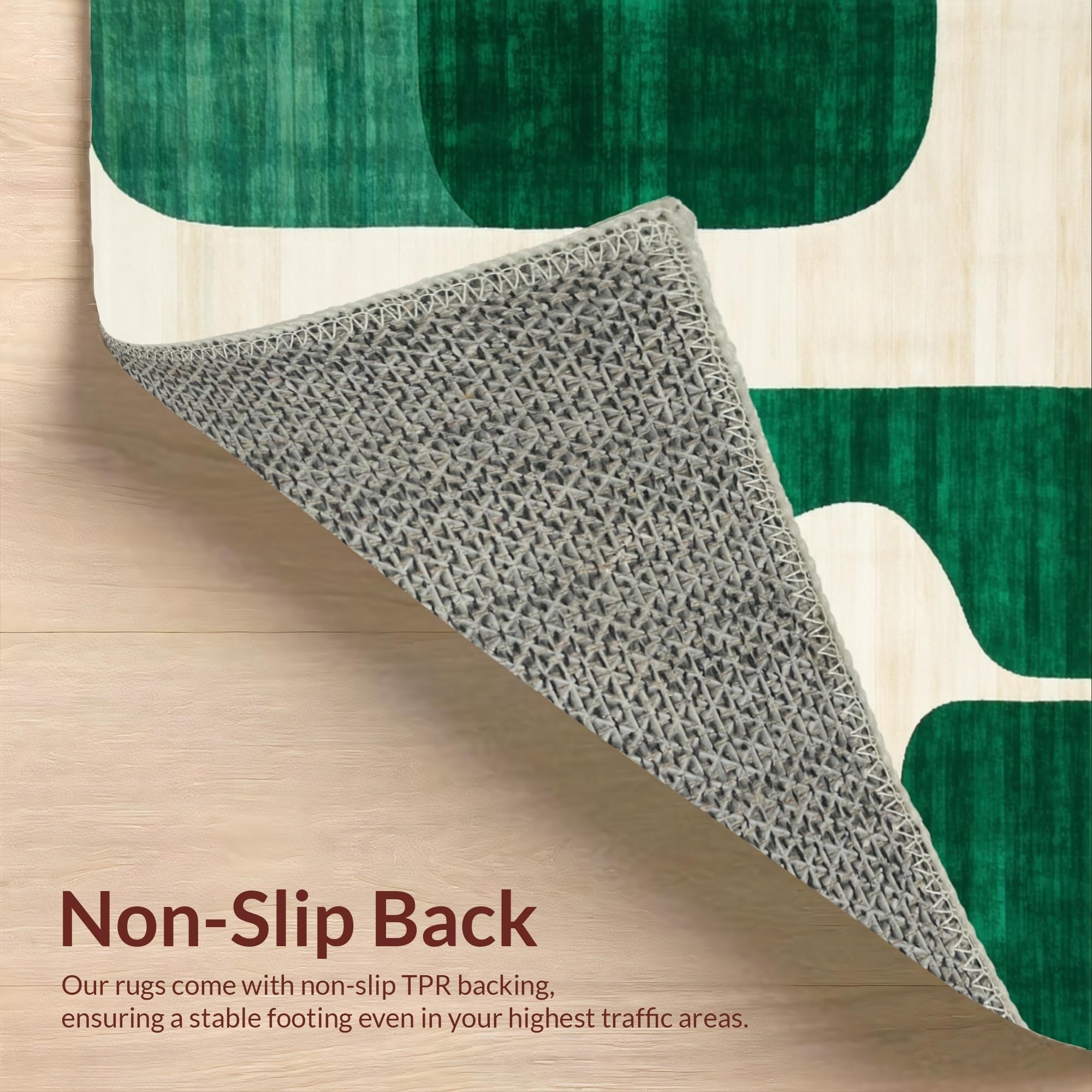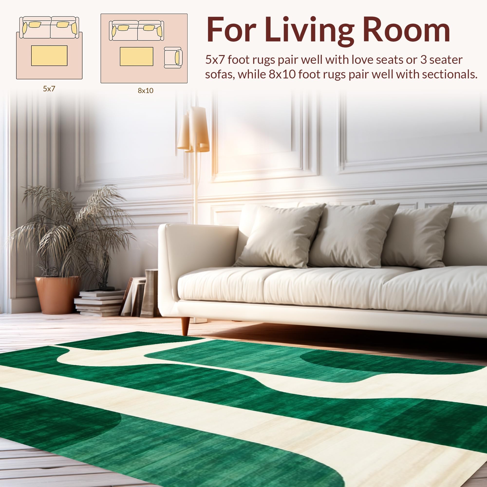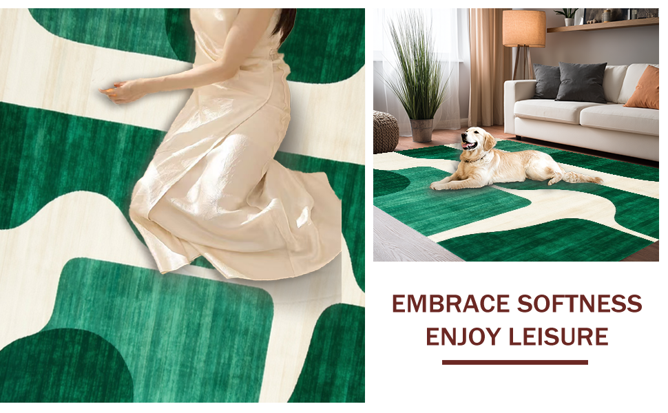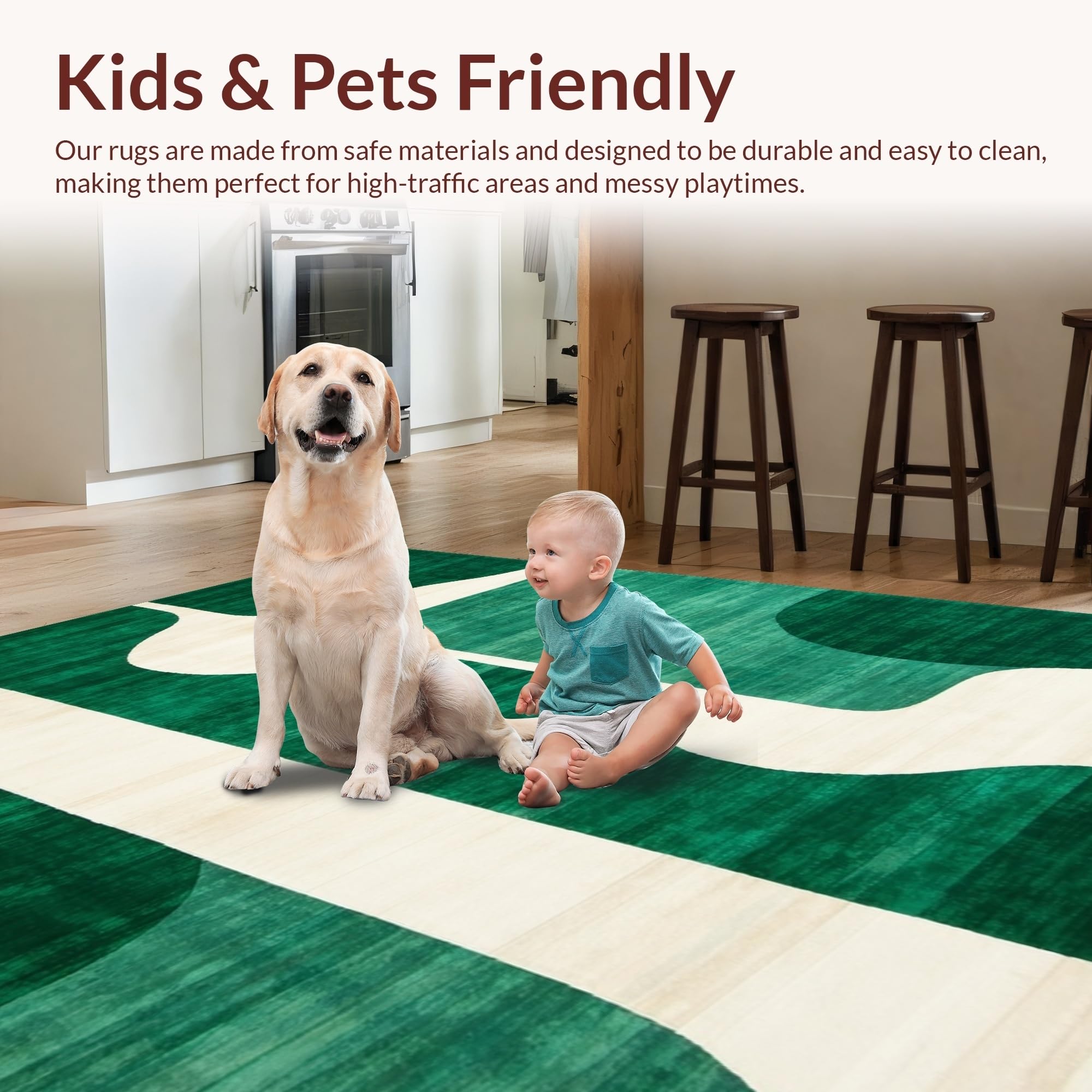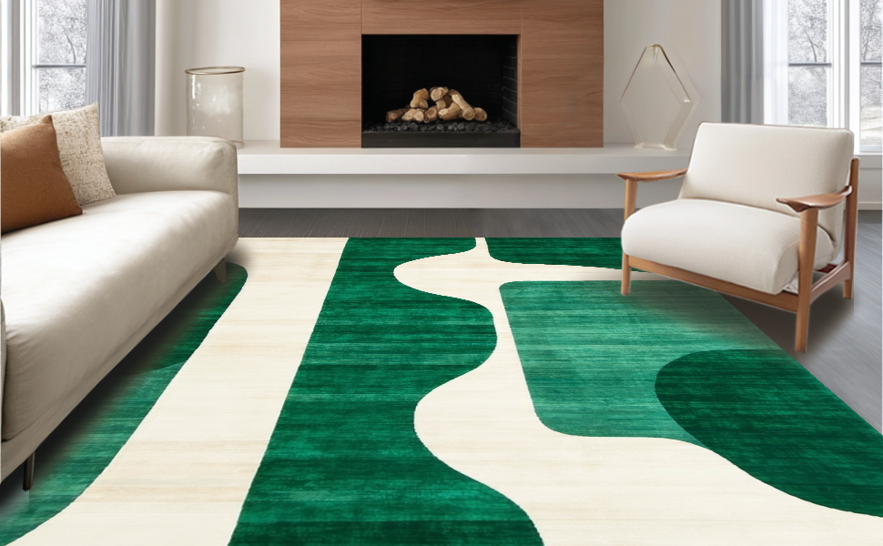 Ultra Soft Area Rug, Non Slip, Stain Resistant, Washable Area Rugs for Living Room, Bedroom, Abstract Irregular Line Composition(Green) Overview: