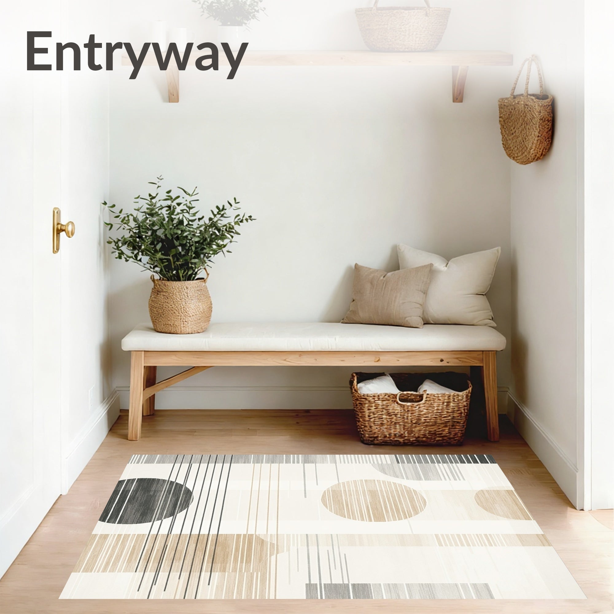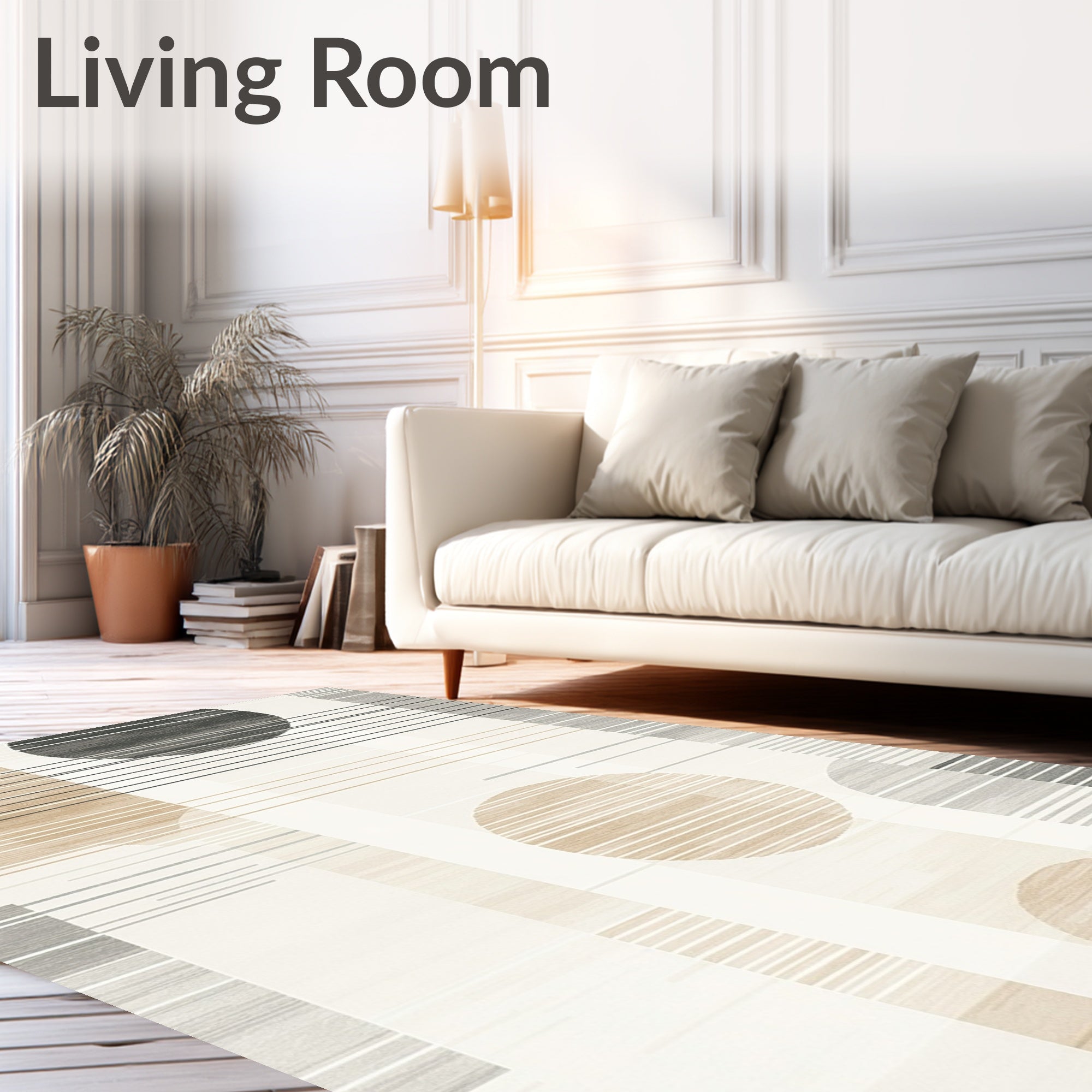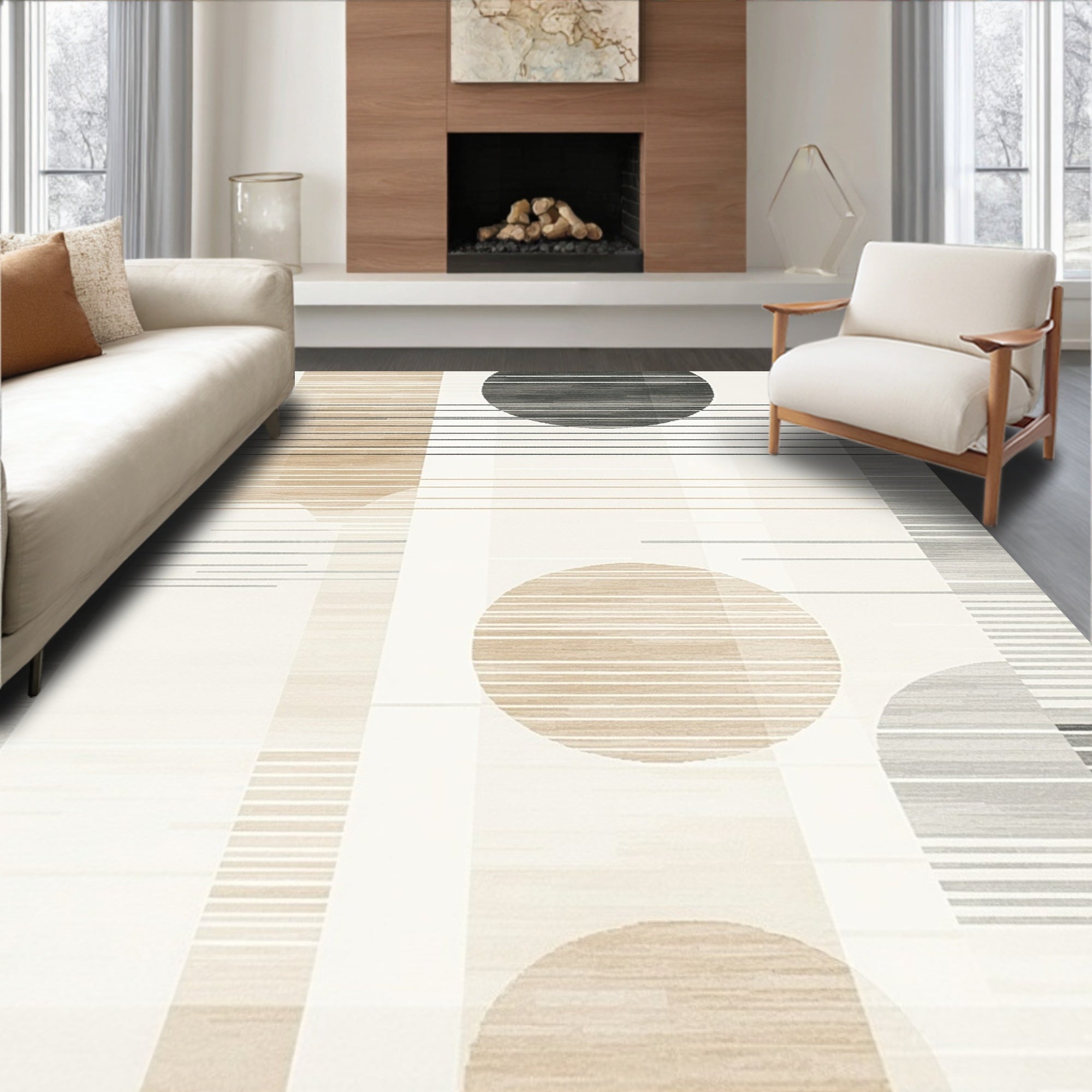 Ultra Soft Area Rug, Non Slip, Stain Resistant, Washable Area Rugs for Living Room, Bedroom, Abstract Linear Bands and Earthy Neutrals Design(Beige) Overview: