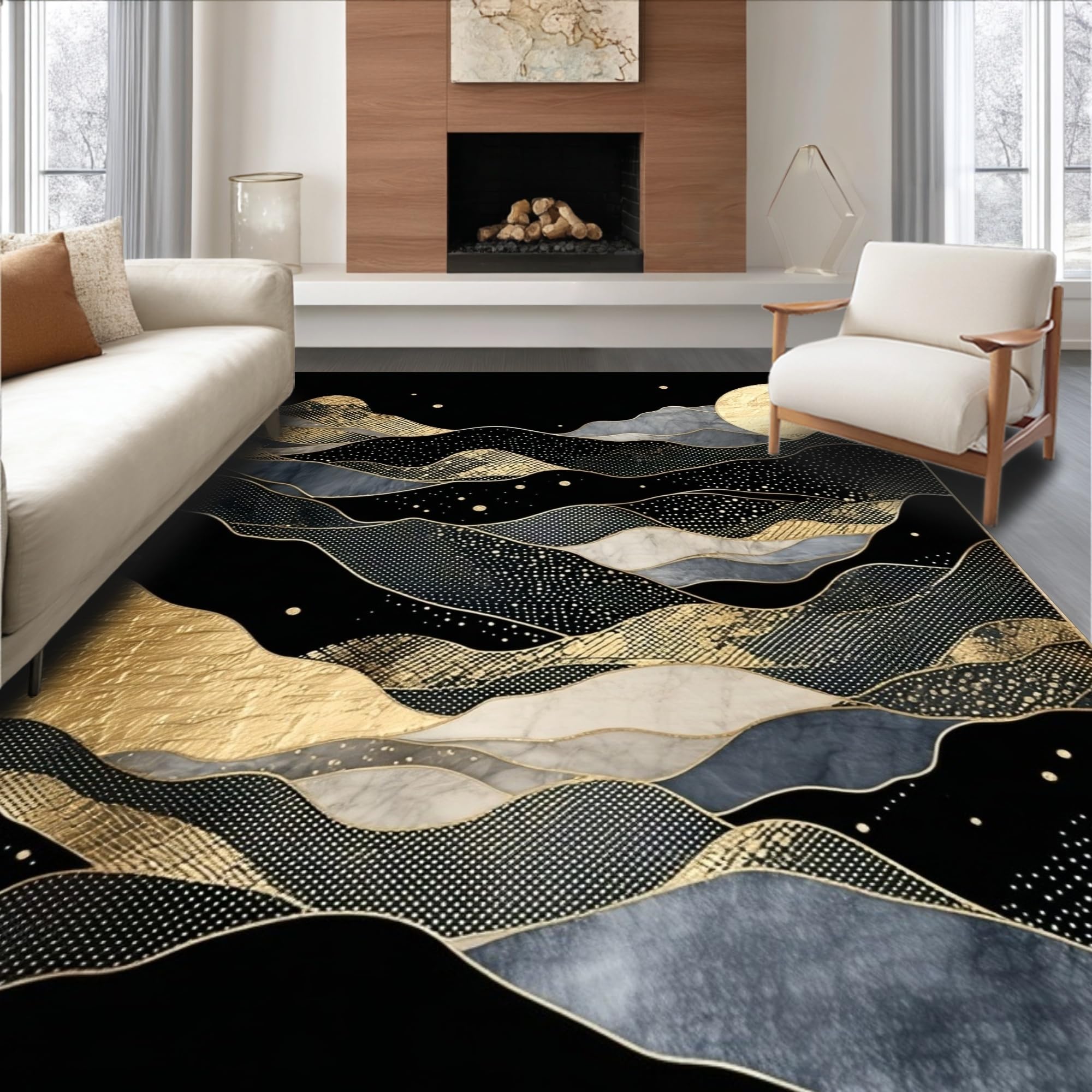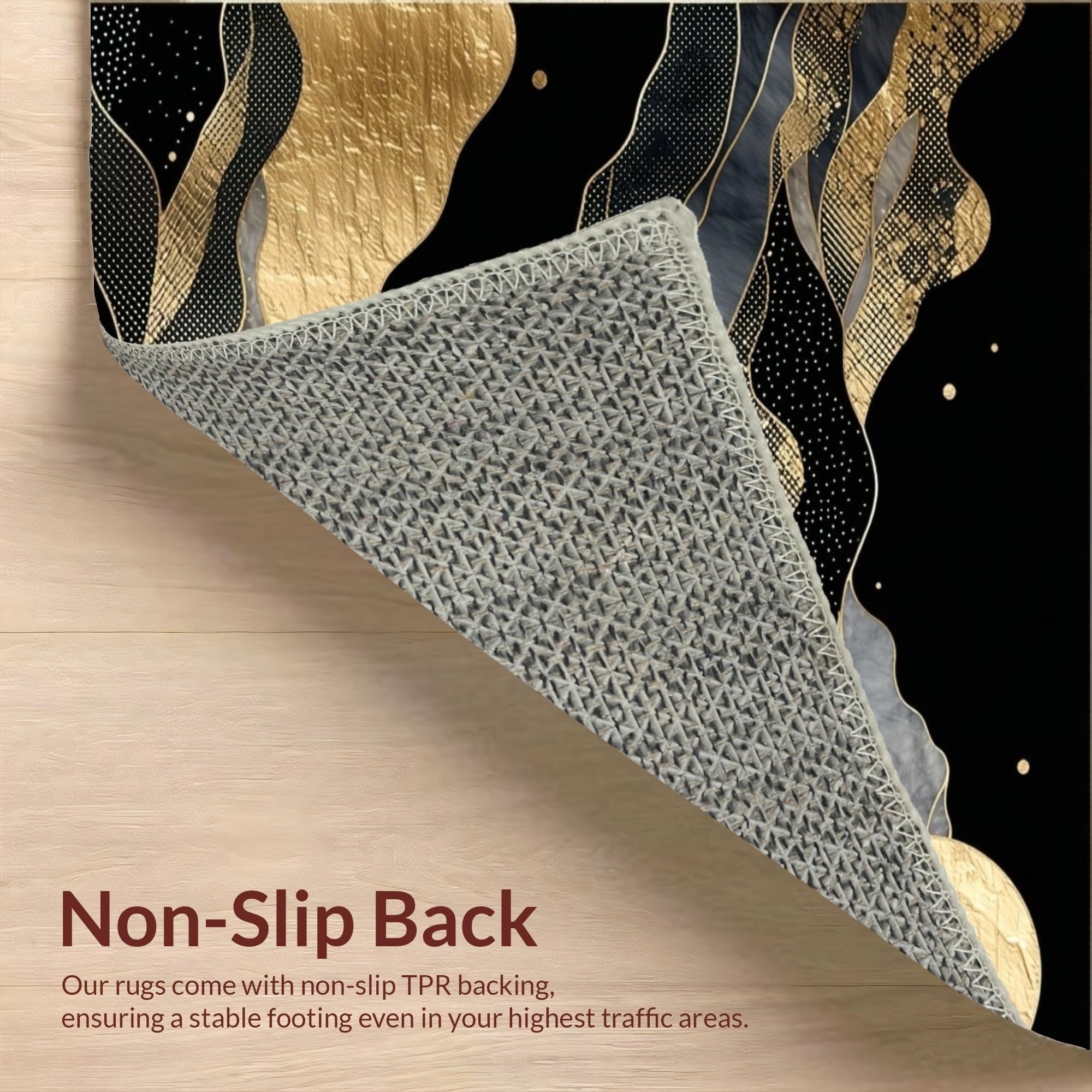 Ultra Soft Area Rug, Non Slip, Stain Resistant, Washable Area Rugs for Living Room, Bedroom, Abstract Luxe Marbleized Design(Black) Overview: