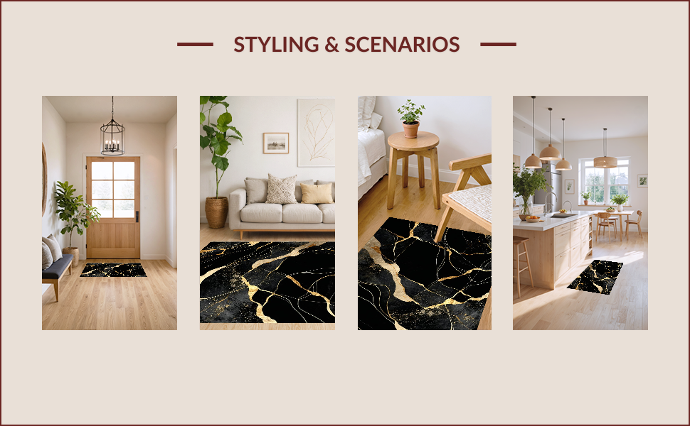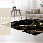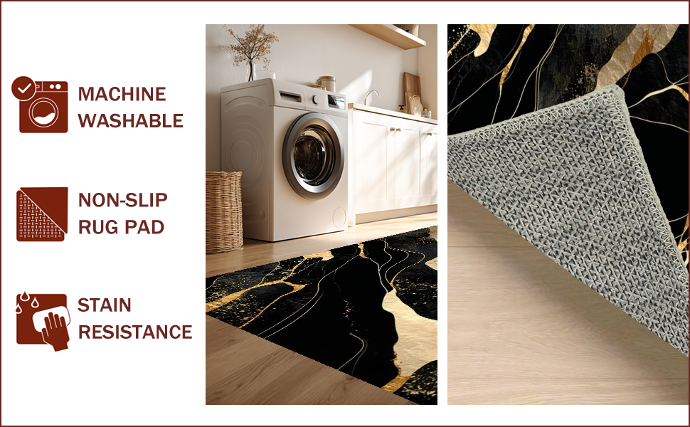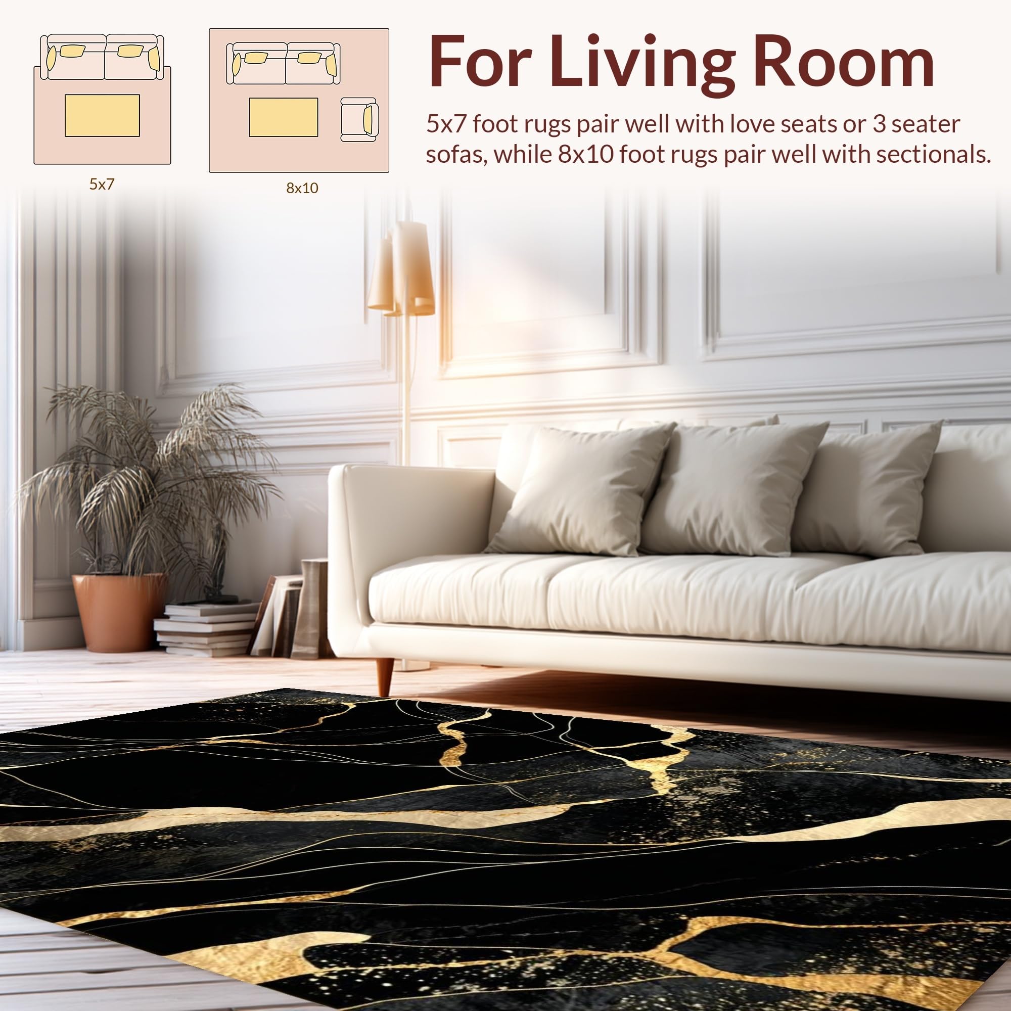Ultra Soft Area Rug, Non Slip, Stain Resistant, Washable Area Rugs for Living Room, Bedroom, Abstract Marble Luxe Design(Black) Overview:
