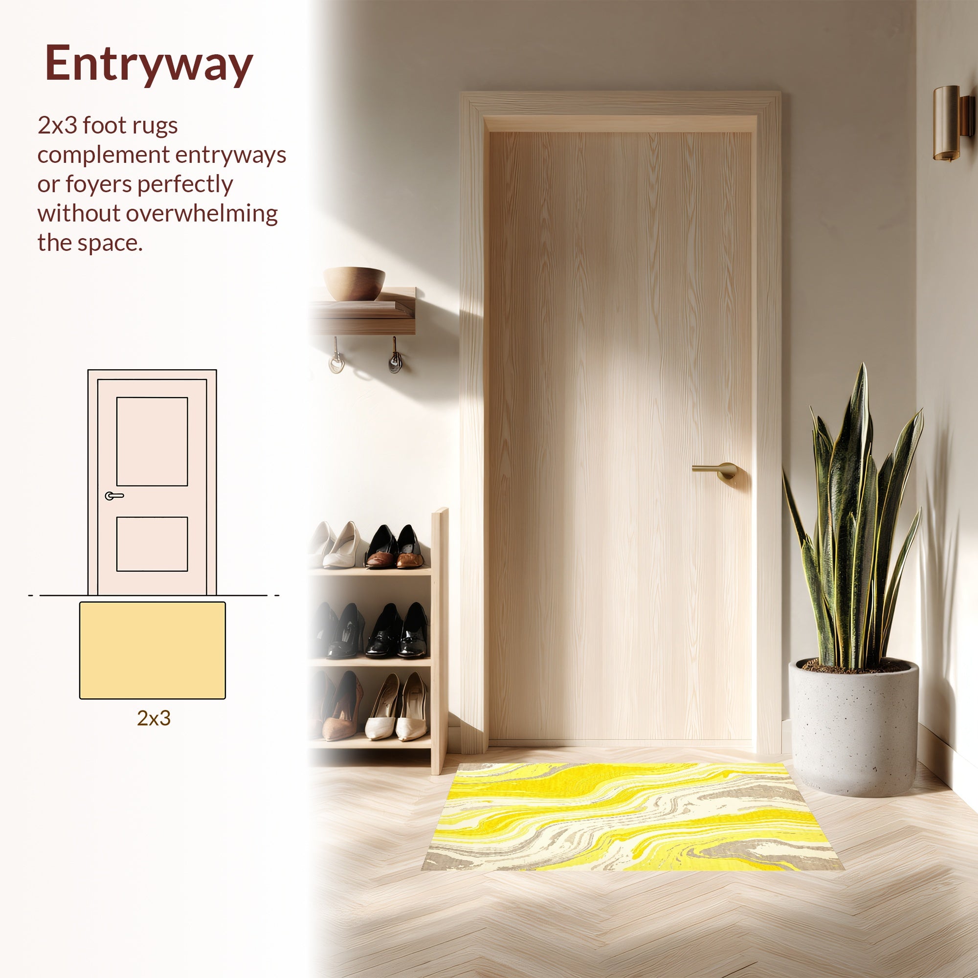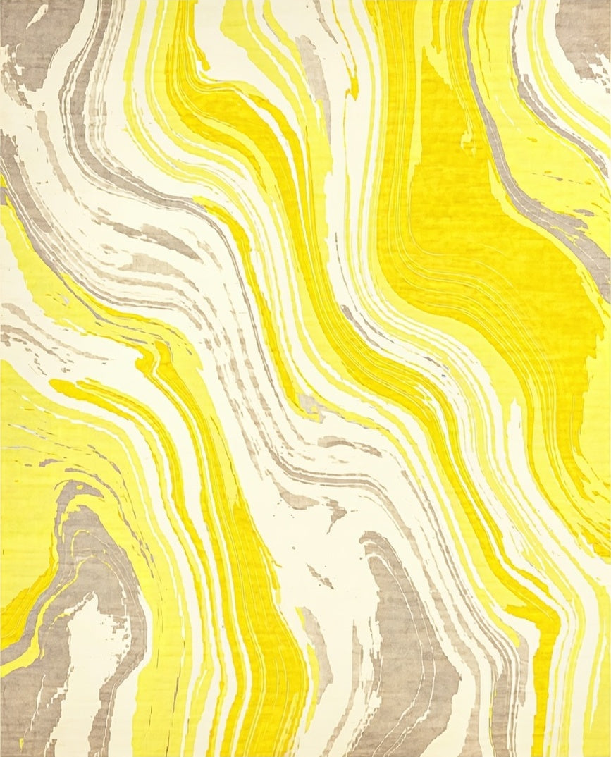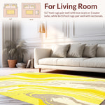 Flatwoven High Traffic Area Rug, Abstract Marble Wave Aesthetic, Non Slip, Stain Resistant, Washable Area Rugs for Living Room, Bedroom (Yellow) Overview: