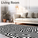 Ultra Soft Area Rug, Non Slip, Stain Resistant, Washable Area Rugs for Living Room, Bedroom, Abstract Maze Design With Bold Contrasting(Black) Overview:
