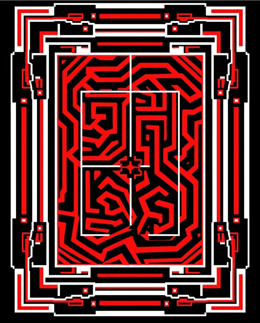 Abstract Maze Featuring Angular Pathways and Contrasting Highlights(Black)
