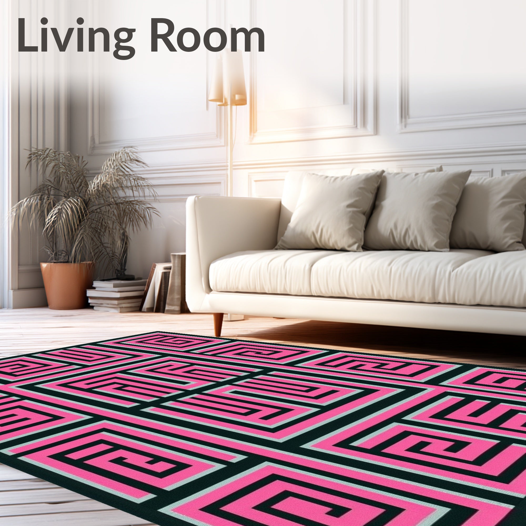 Ultra Soft Area Rug, Non Slip, Stain Resistant, Washable Area Rugs for Living Room, Bedroom, Abstract Maze Inspired Grid with Subtle Gradient Shading(Pink) Overview: