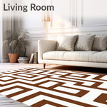 Flatwoven High Traffic Area Rug, Abstract Maze with Interlocking Rectangular Stripes, Non Slip, Stain Resistant, Washable Area Rugs for Living Room, Bedroom (Brown) Overview:
