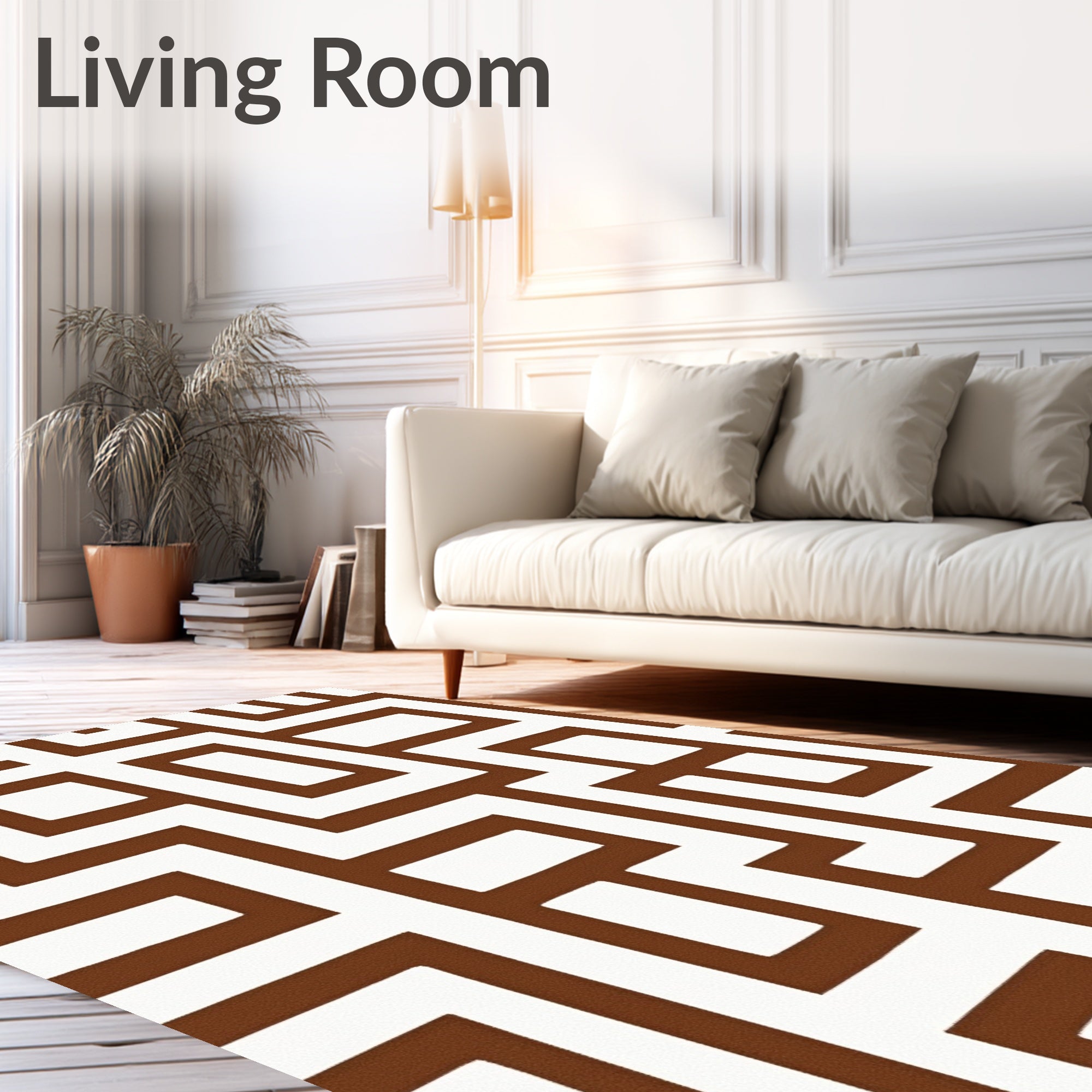 Ultra Soft Area Rug, Non Slip, Stain Resistant, Washable Area Rugs for Living Room, Bedroom, Abstract Maze with Interlocking Rectangular Stripes(Brown) Overview: