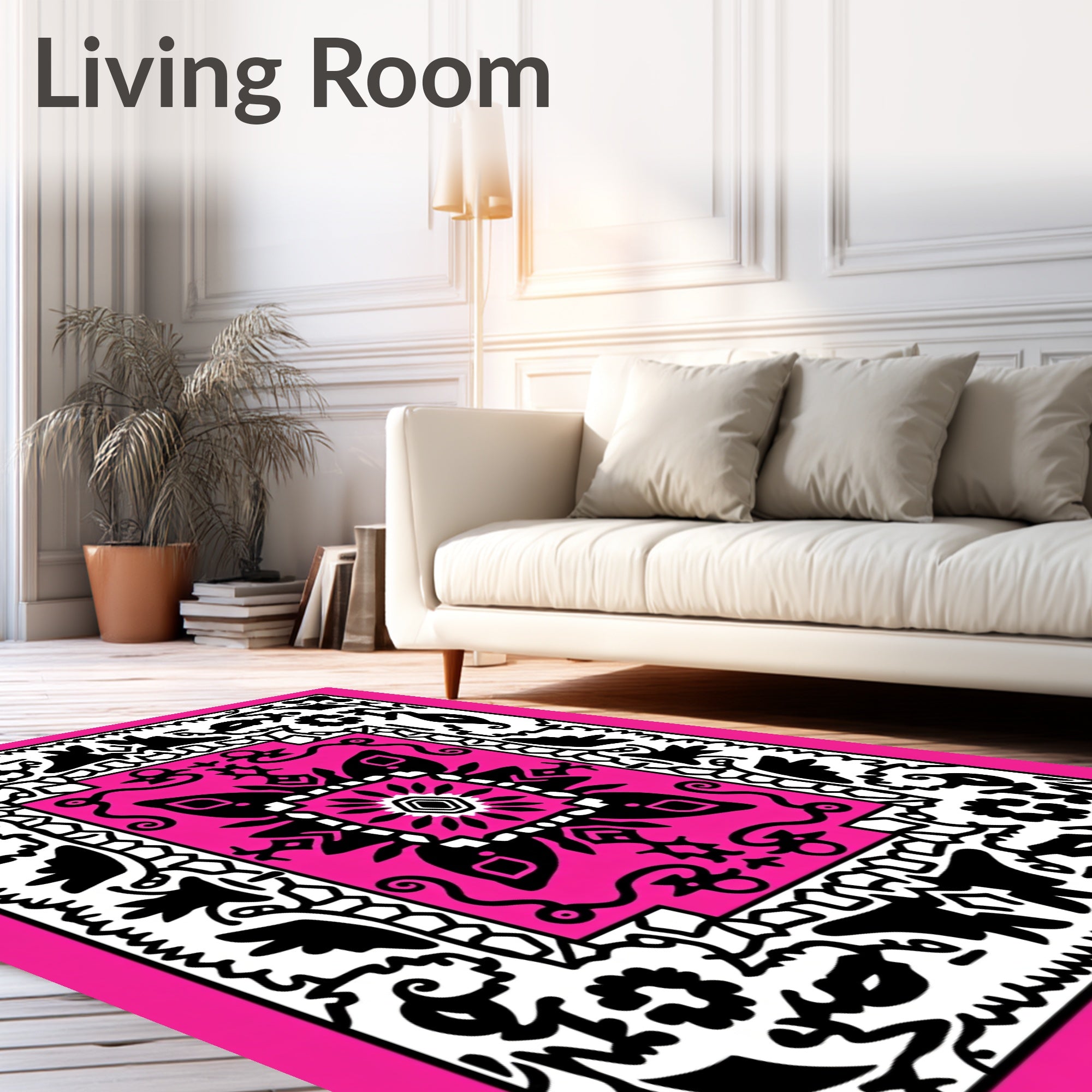 Ultra Soft Area Rug, Non Slip, Stain Resistant, Washable Area Rugs for Living Room, Bedroom, Abstract Medallion Design with Symmetrical(Pink) Overview: