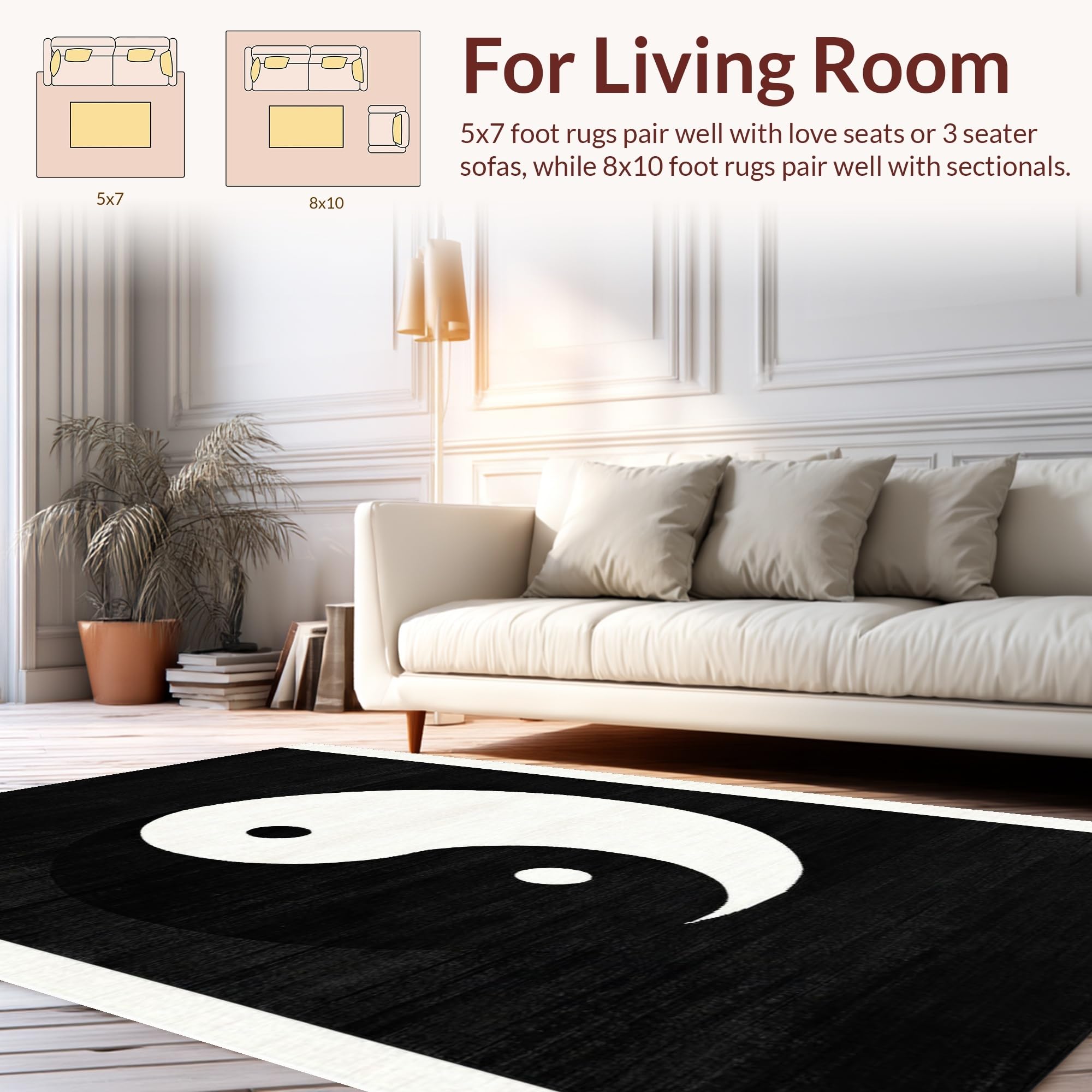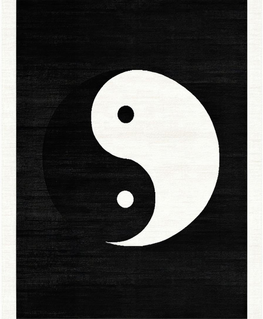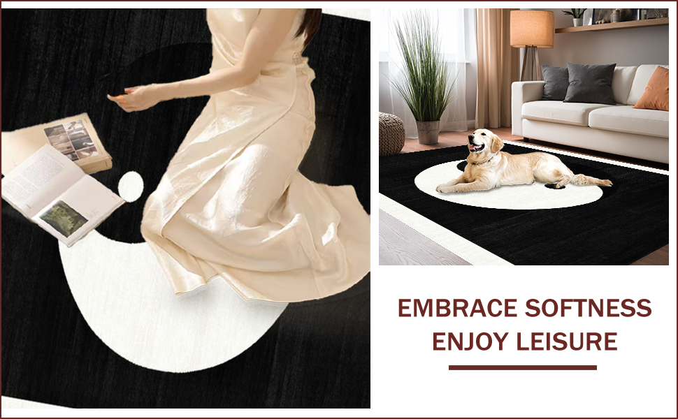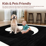 Ultra Soft Area Rug, Non Slip, Stain Resistant, Washable Area Rugs for Living Room, Bedroom, Abstract Monochrome Circular Aesthetic(Black) Overview: