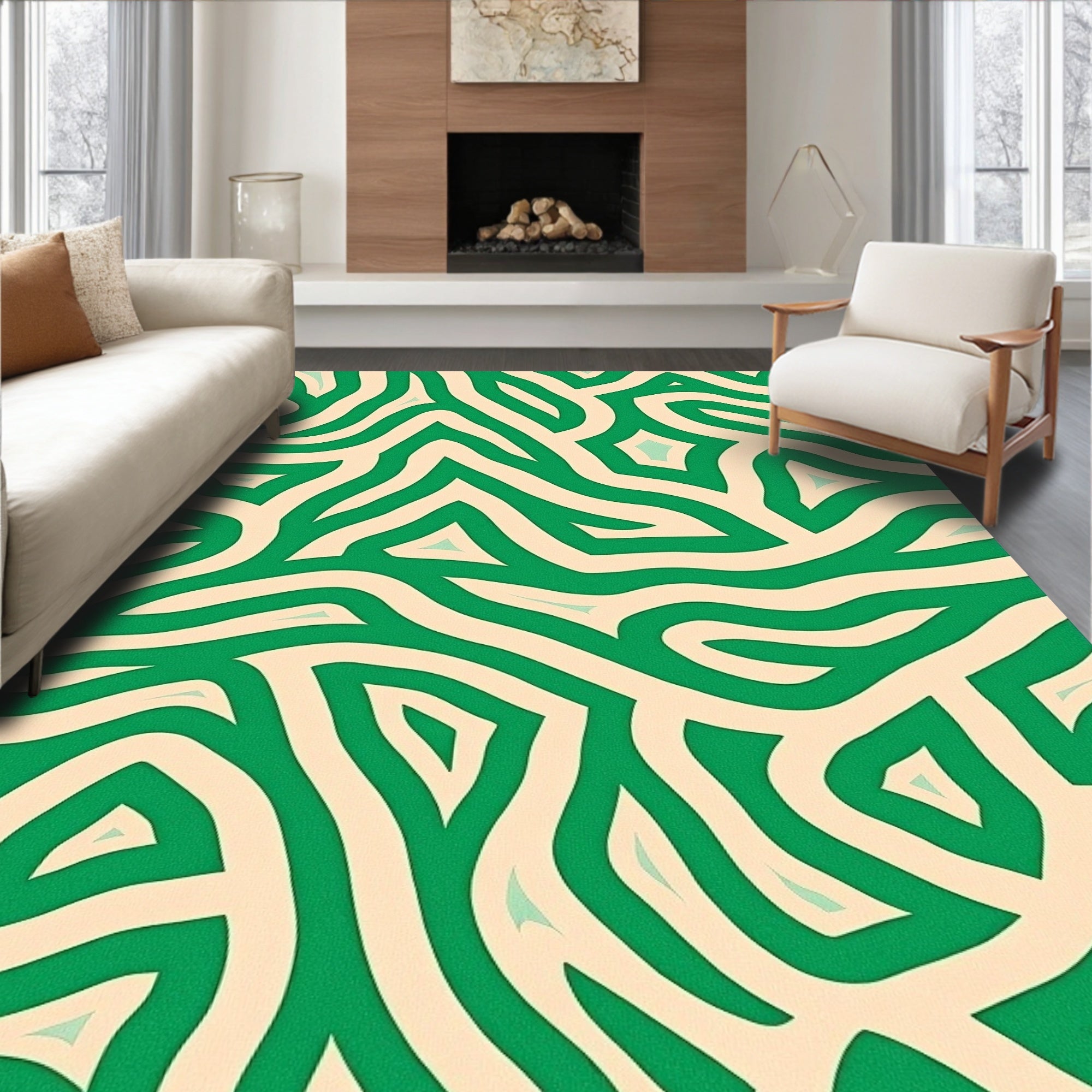 Ultra Soft Area Rug, Non Slip, Stain Resistant, Washable Area Rugs for Living Room, Bedroom, Abstract Nature Inspired Mosaic Design(Green) Overview: