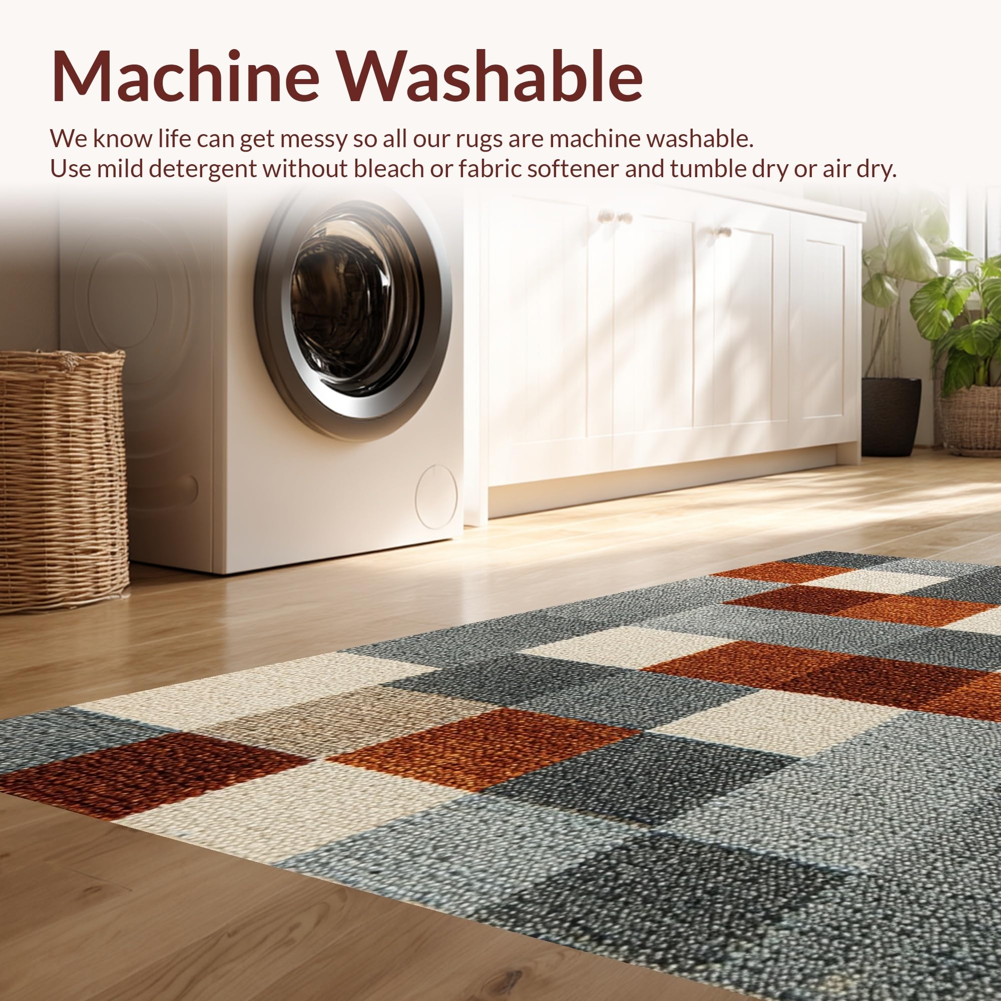 - Machine Washable: Our rugs can be easily thrown in the wash machine.