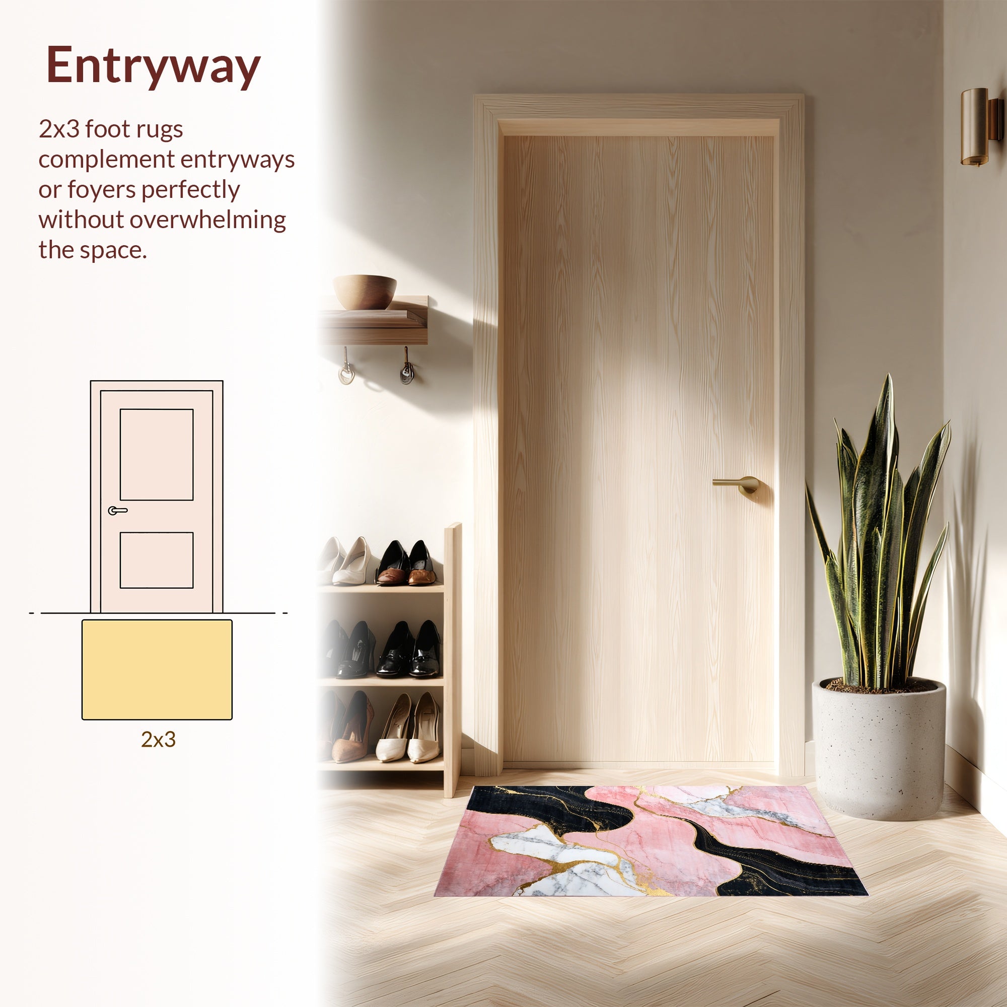 Flatwoven High Traffic Area Rug, Abstract Pink and Black, Non Slip, Stain Resistant, Washable Area Rugs for Living Room, Bedroom (Pink) Overview: