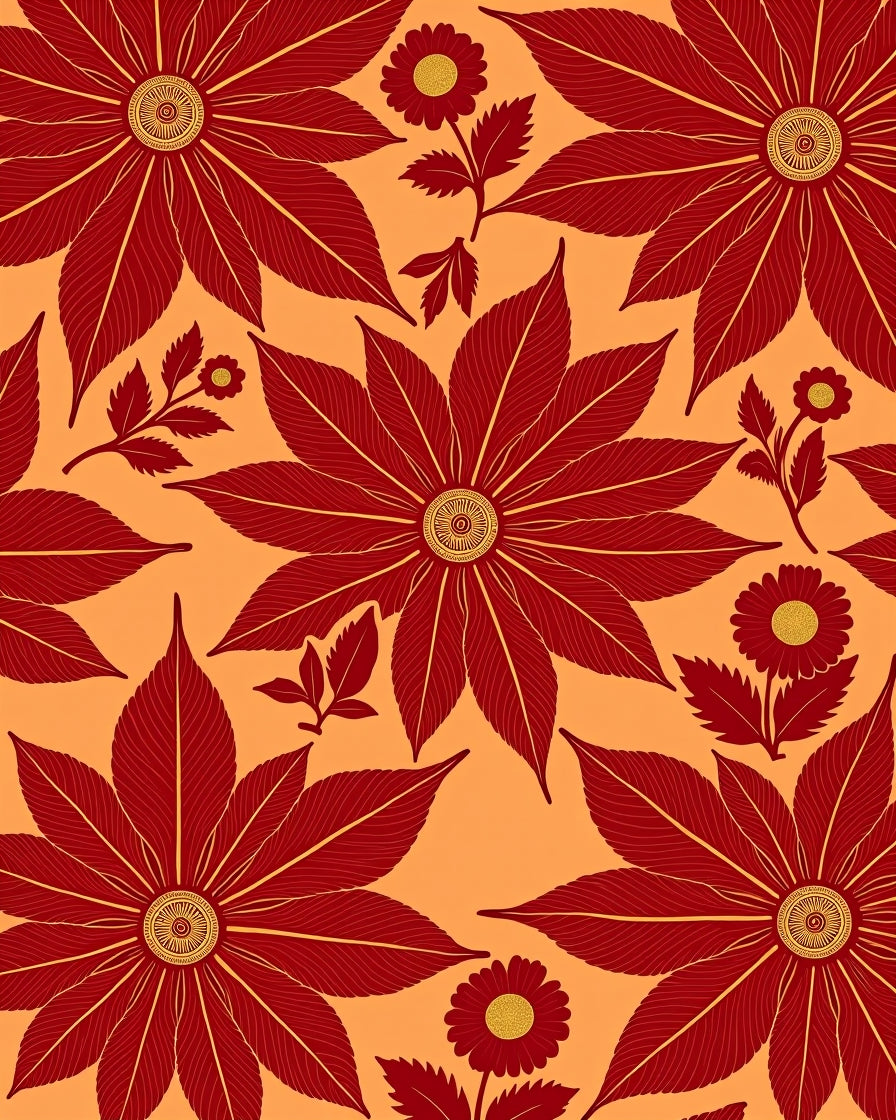 Abstract Poinsettia Bloom Design Low Pile Decorative Holiday Textile(Red)