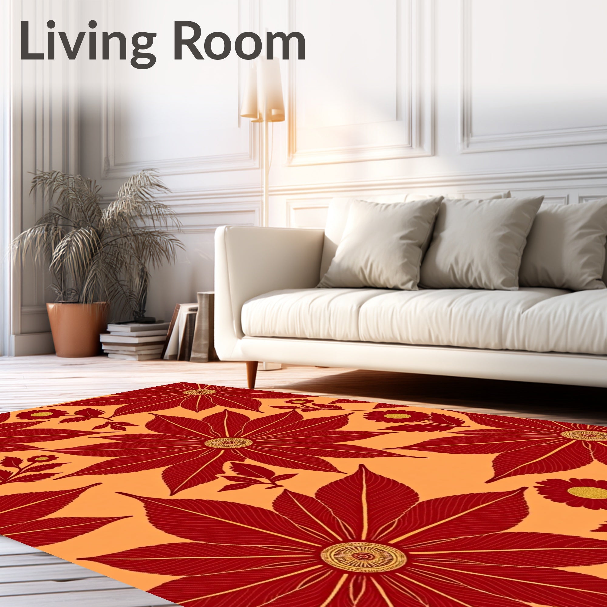 Ultra Soft Area Rug, Non Slip, Stain Resistant, Washable Area Rugs for Living Room, Bedroom, Abstract Poinsettia Bloom Design Low Pile Decorative Holiday Textile(Red) Overview: