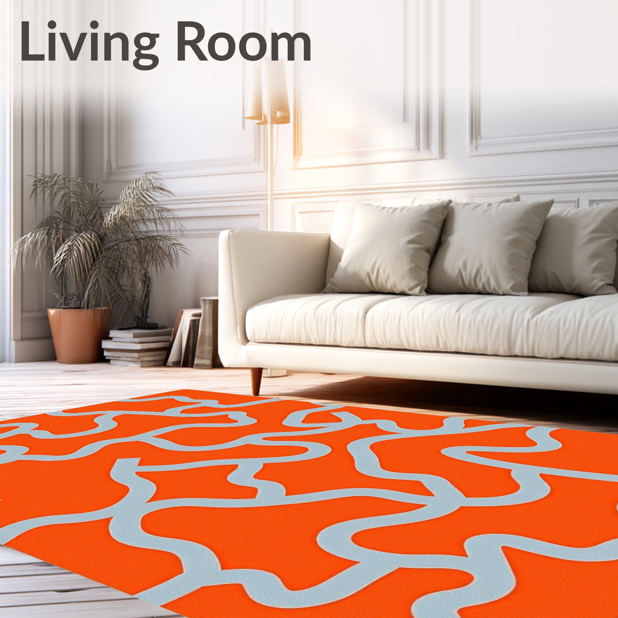 Ultra Soft Area Rug, Non Slip, Stain Resistant, Washable Area Rugs for Living Room, Bedroom, Abstract Smoke Swirl Interlocking Cloud Design(Orange) Overview: