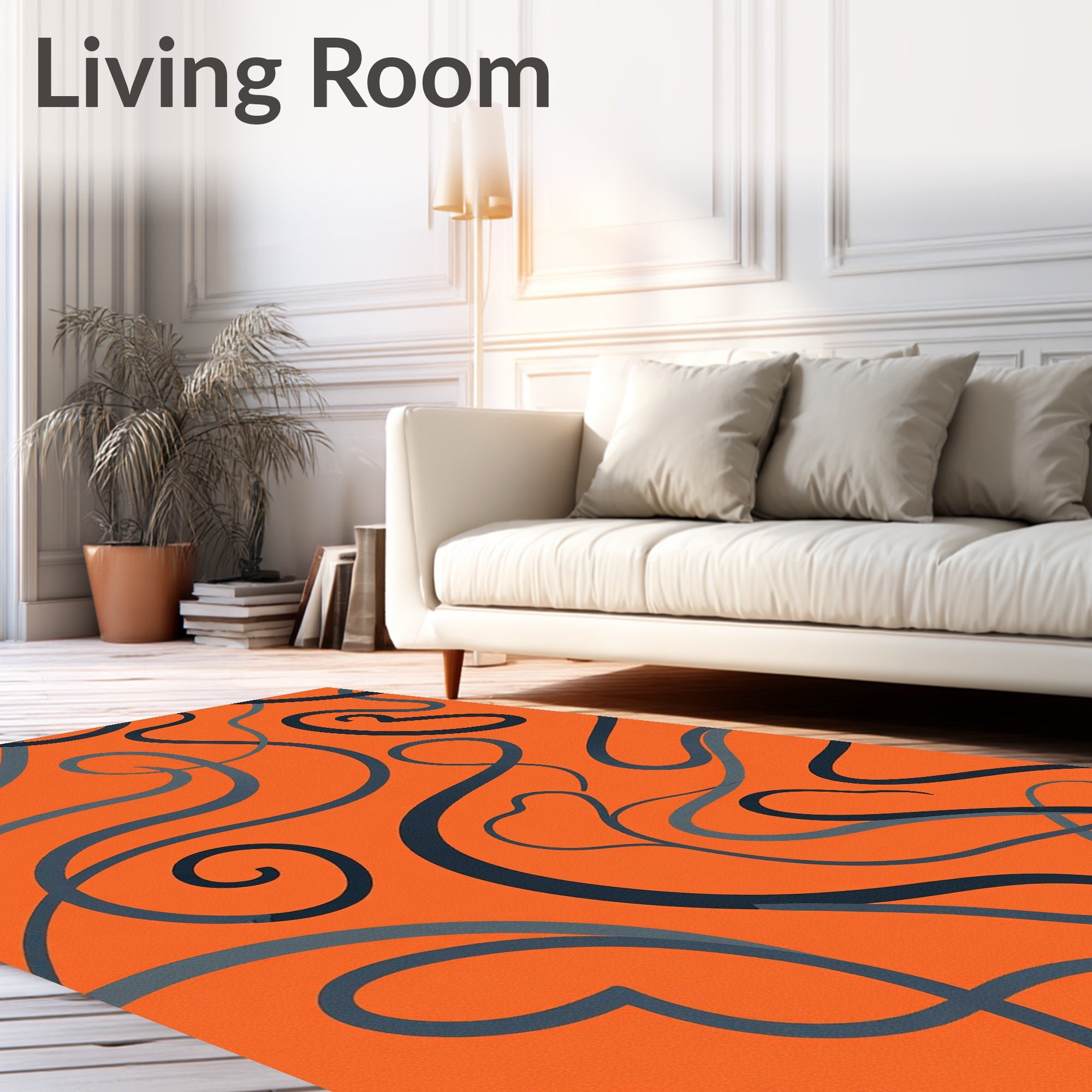 Ultra Soft Area Rug, Non Slip, Stain Resistant, Washable Area Rugs for Living Room, Bedroom, Abstract Smoke Trails Featuring Deep Grey And Black Tones(Orange) Overview: