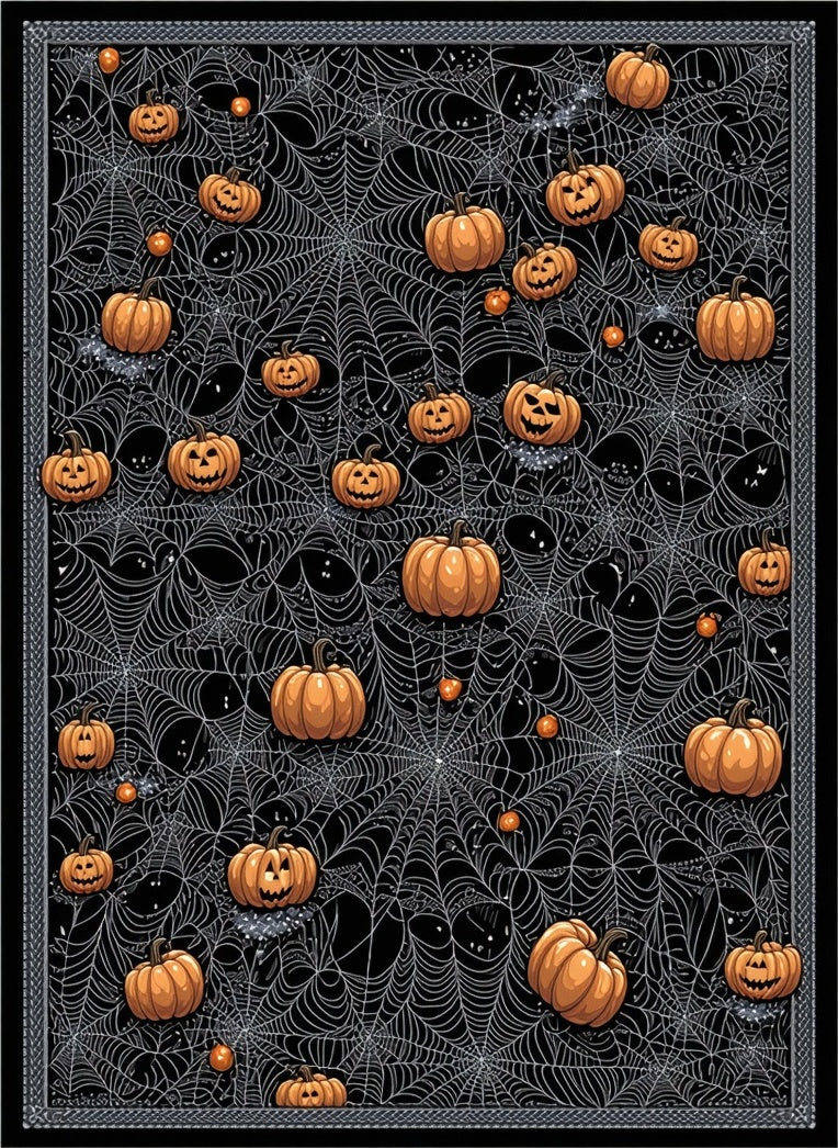 Abstract Spider Web and Pumpkin Motif Round with Gothic Charm(Orange)