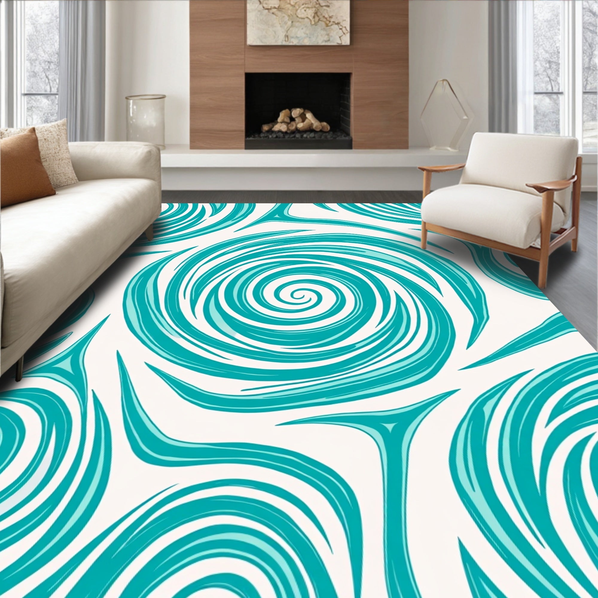 Ultra Soft Area Rug, Non Slip, Stain Resistant, Washable Area Rugs for Living Room, Bedroom, Abstract Spiral Swirl with Teal and Accents(Teal) Overview: