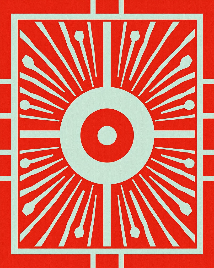 Abstract Sunburst Medallion with Motif and Southwest Flair(Red)