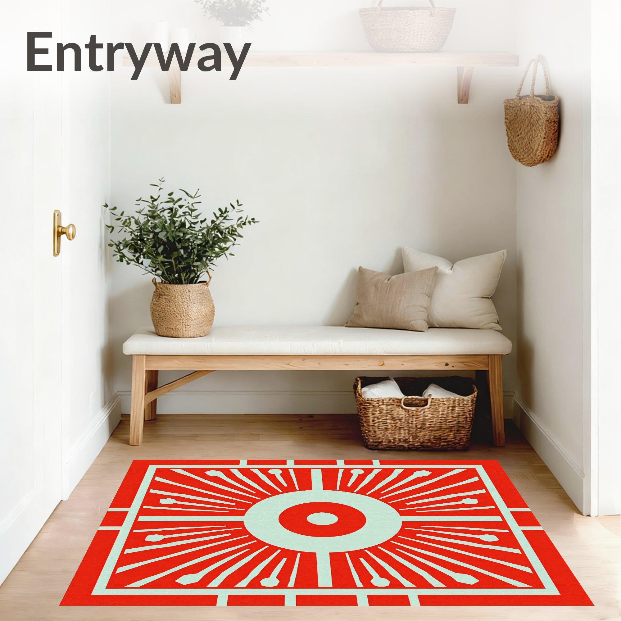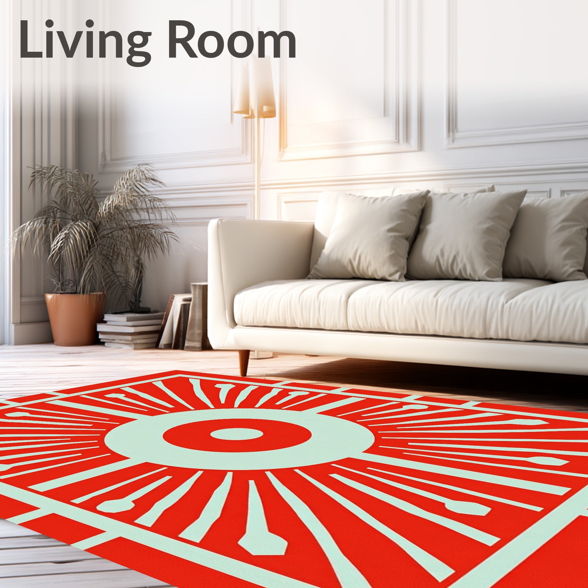 Ultra Soft Area Rug, Non Slip, Stain Resistant, Washable Area Rugs for Living Room, Bedroom, Abstract Sunburst Medallion with Motif and Southwest Flair(Red) Overview: