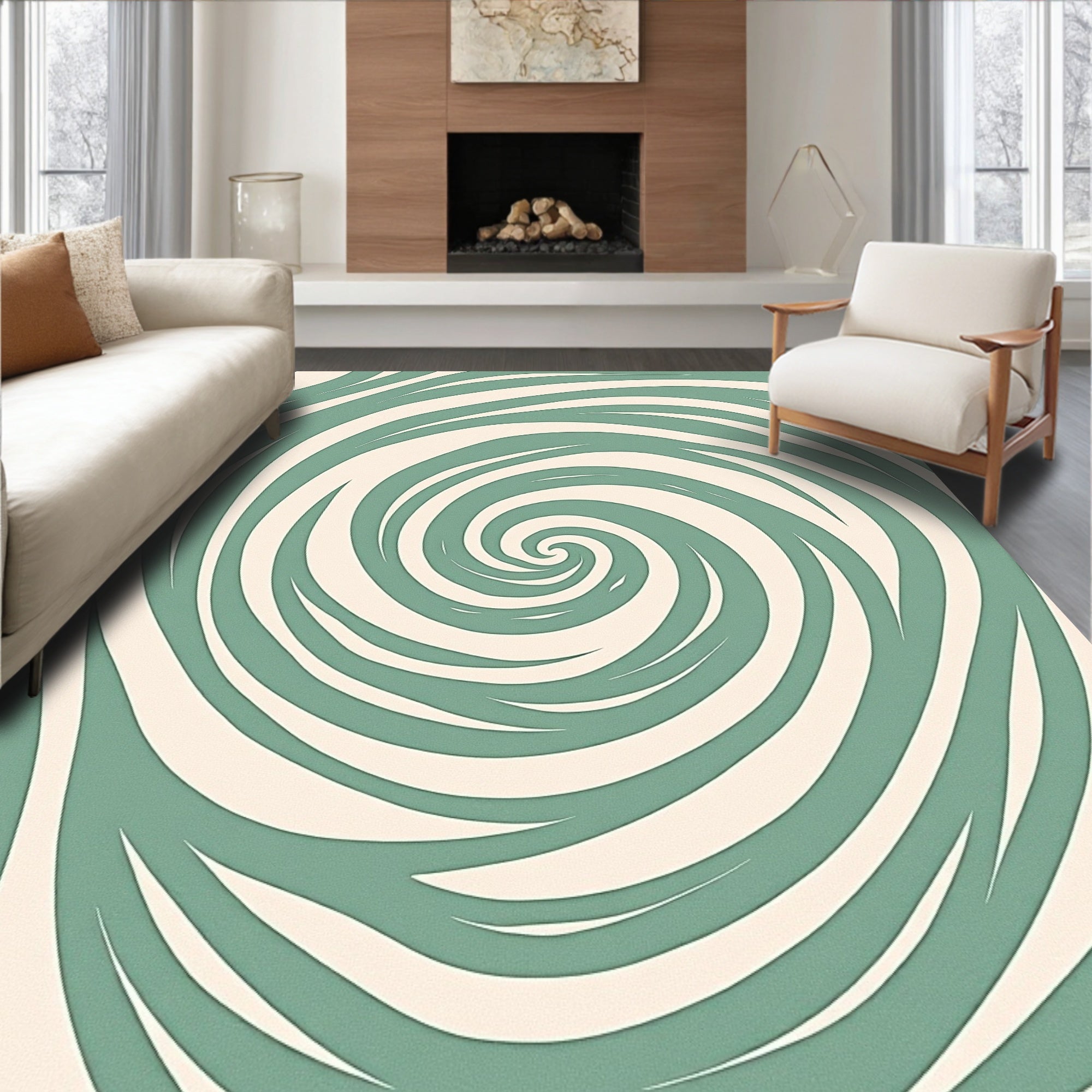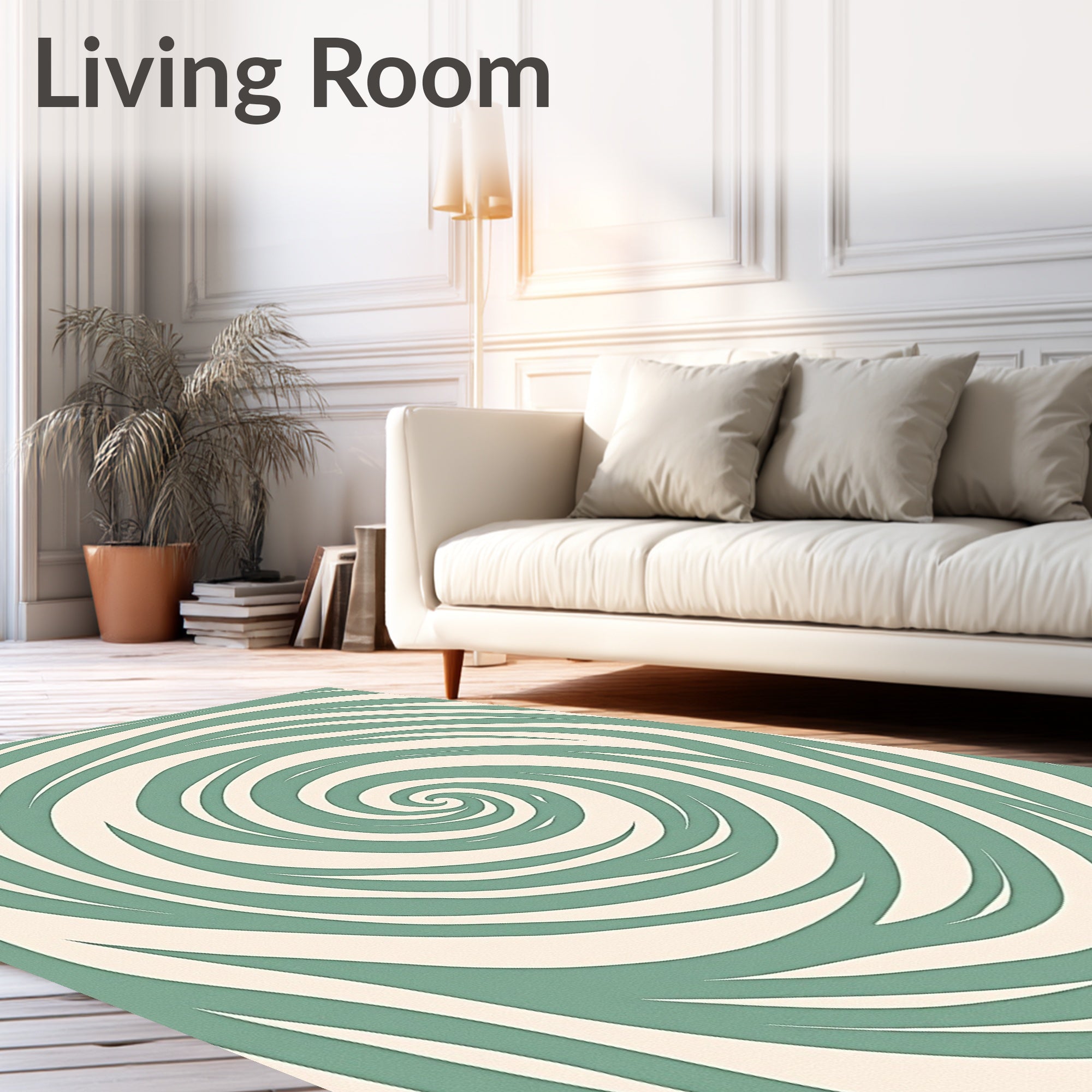 Ultra Soft Area Rug, Non Slip, Stain Resistant, Washable Area Rugs for Living Room, Bedroom, Abstract Swirl Vortex Design with Flowing Spiral Wave(Ivory) Overview: