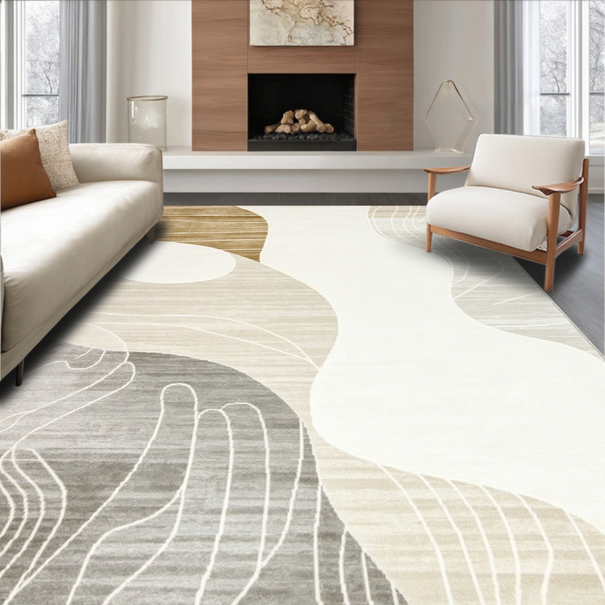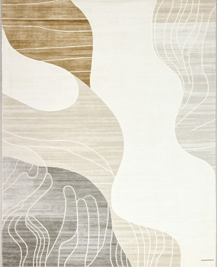 Abstract Swirls Chic Modern Low Pile Non Slip(Beige)