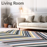 Ultra Soft Area Rug, Non Slip, Stain Resistant, Washable Area Rugs for Living Room, Bedroom, Abstract Tape Patterned Featuring Interwoven Chevron Stripes Design(Black) Overview: